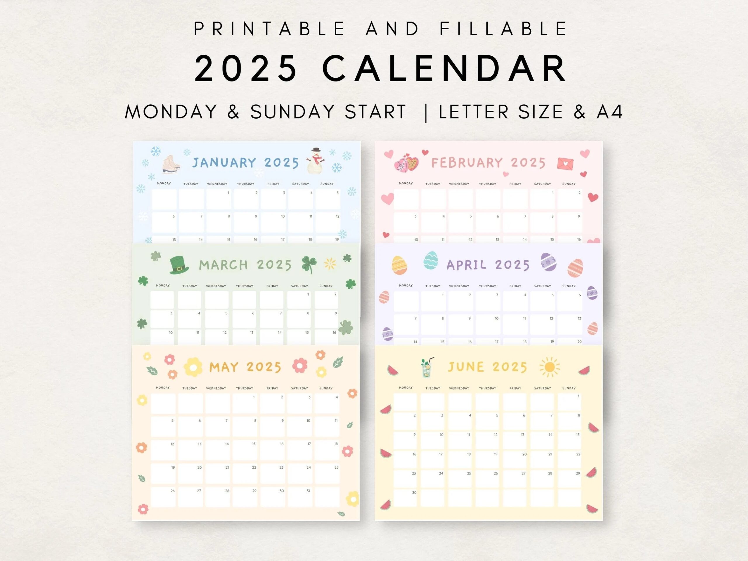 Cute 2025 Calendar Printable Monthly Calendar 2025 2025 Planner Monthly Planner 2025 Aesthetic Calendar Editable Calendar Etsy