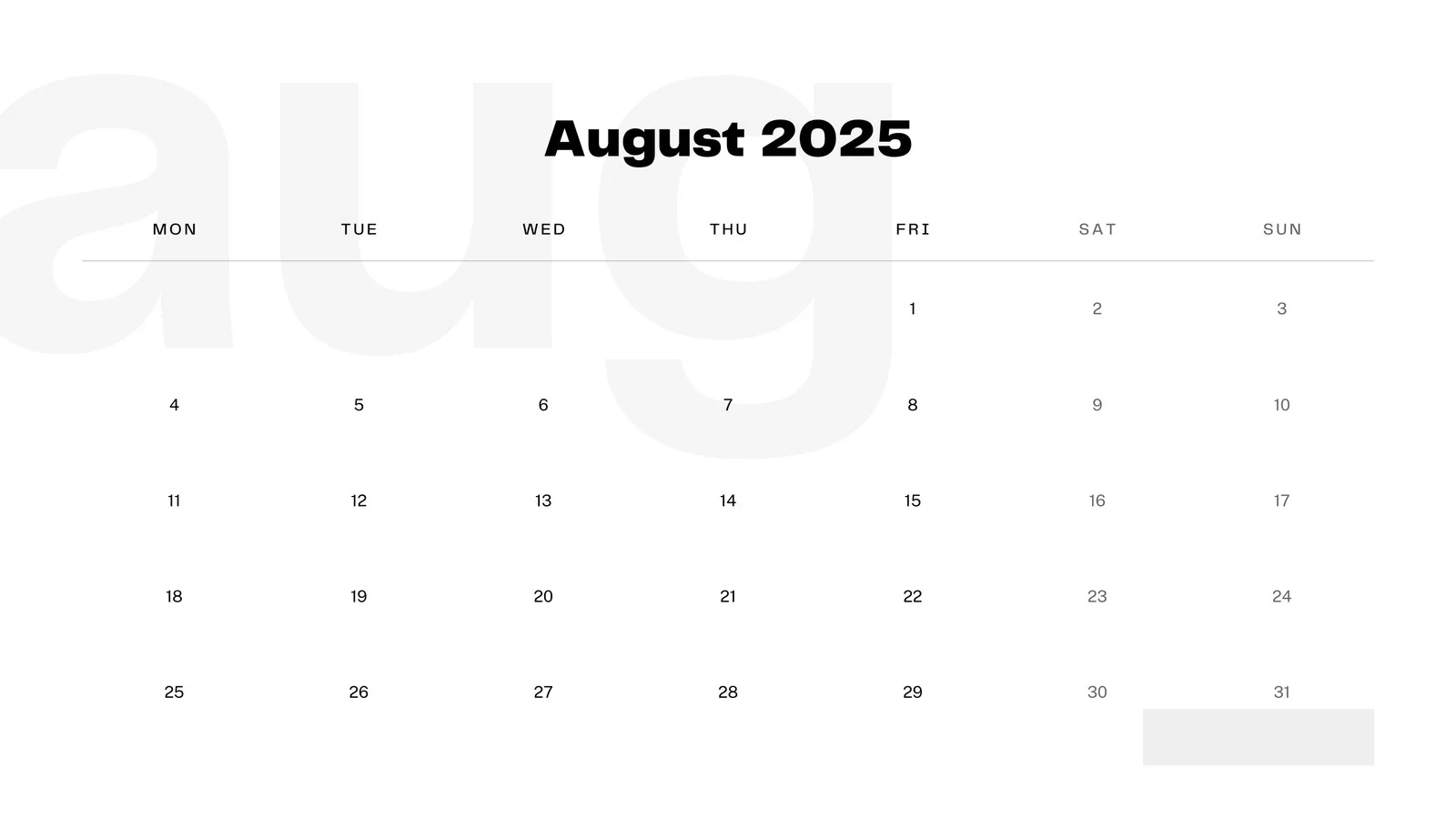 Our August 2025 blank horizontal calendar template is designed to be simple, clean, and easy to use. With plenty of space for each day of the month, you can customize the template to suit your needs. Whether you prefer to color-code your activities or simply write them down, this template gives you the flexibility to organize your month however you like.