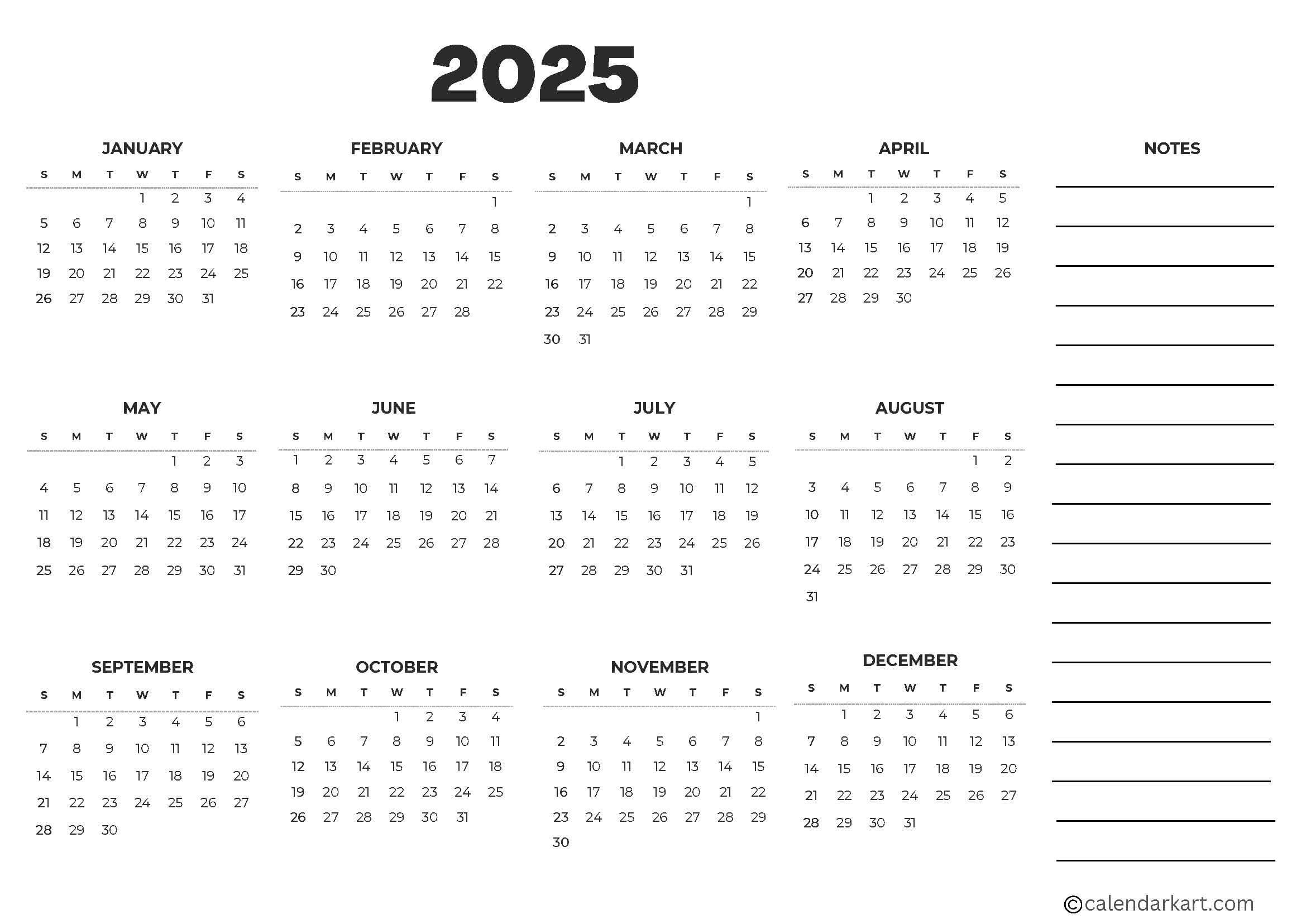 Free Printable Year At A Glance Calendar 2025 CalendarKart