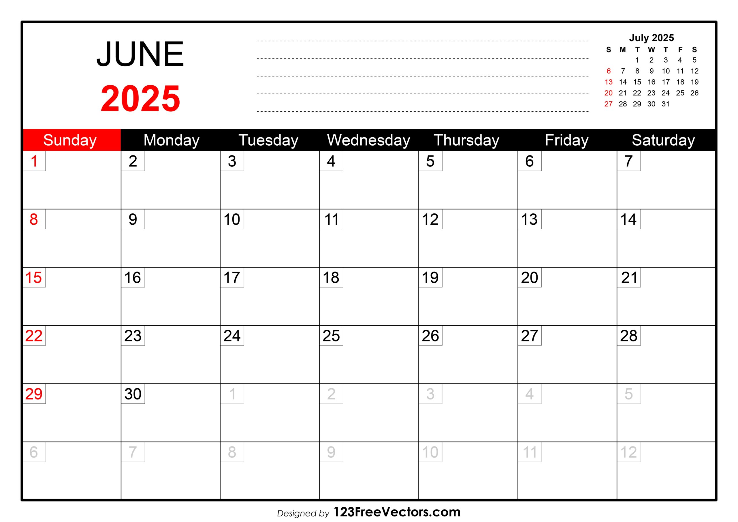 Free Download June 2025 Printable Calendar