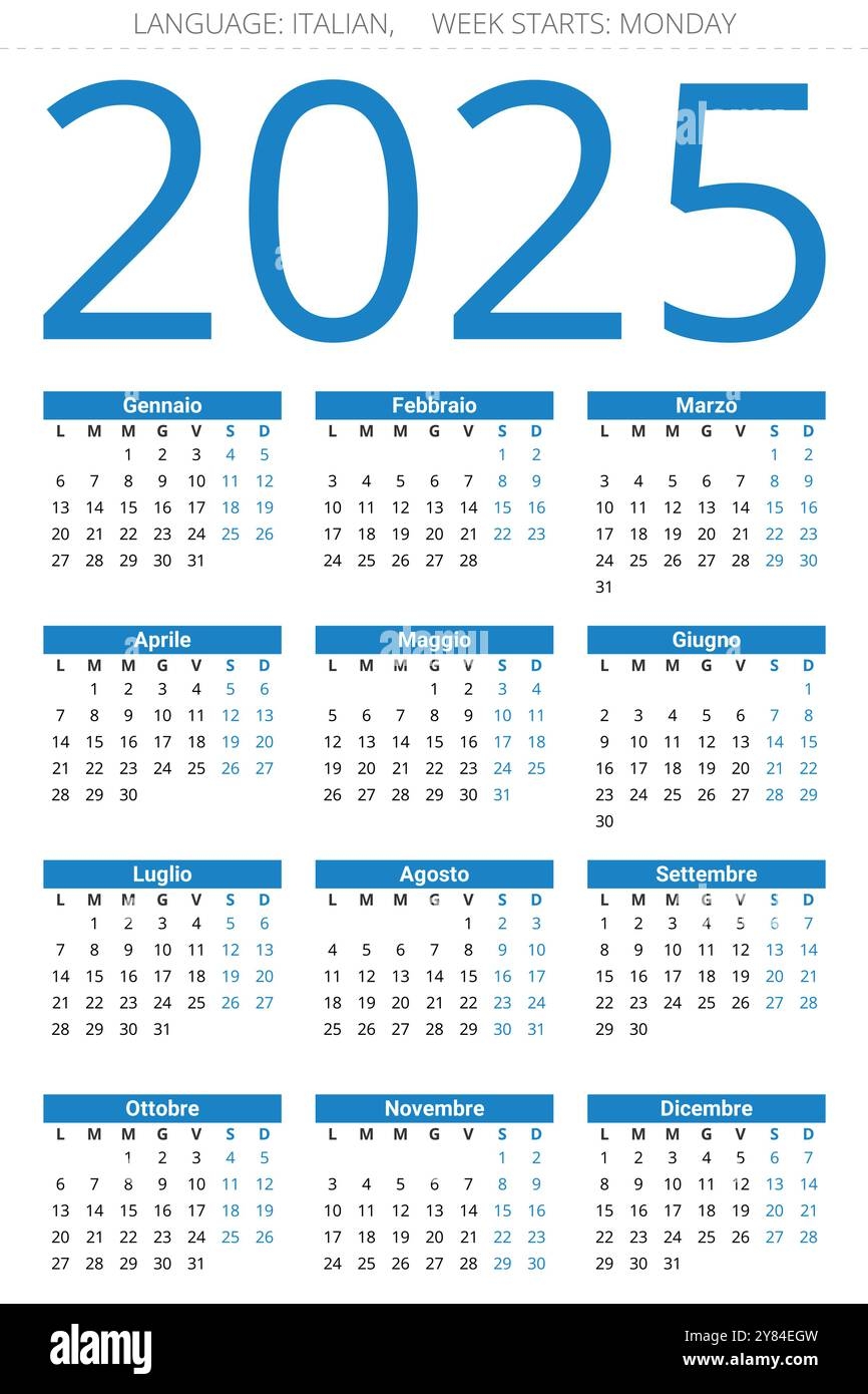 Italy Calendar 2025 Week Starts Monday Stock Vector Royalty Free 2212968421 Shutterstock