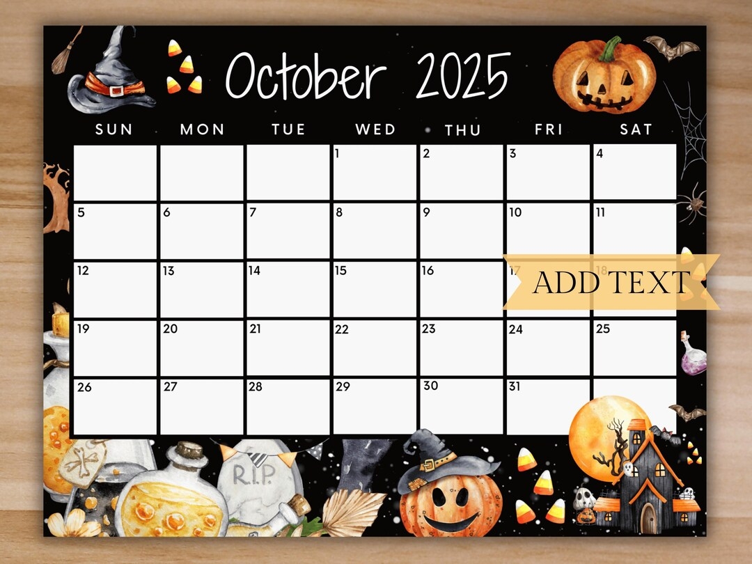 EDITABLE October 2025 Calendar Cute Spooky Halloween 2025 Planner Cute Printable Schedule Planner For Kids School Home Office Work Etsy