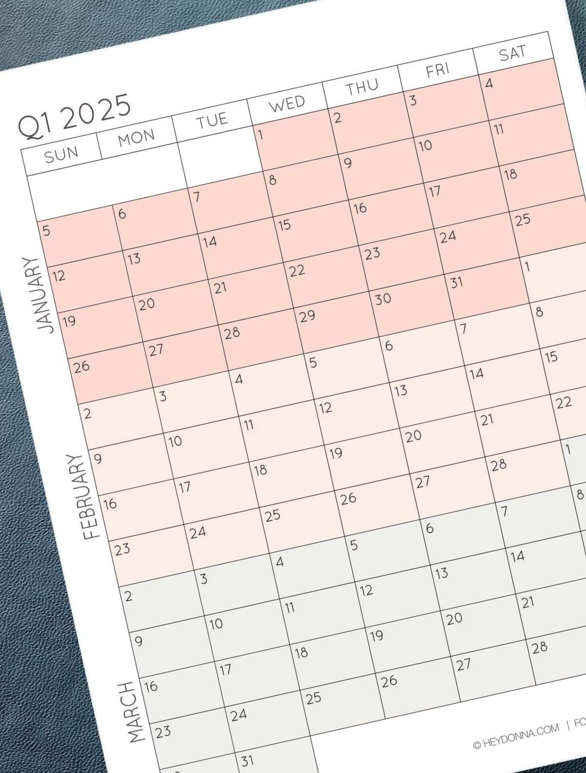 2025 3 Month Quarterly Calendar Printables FREE Hey Donna