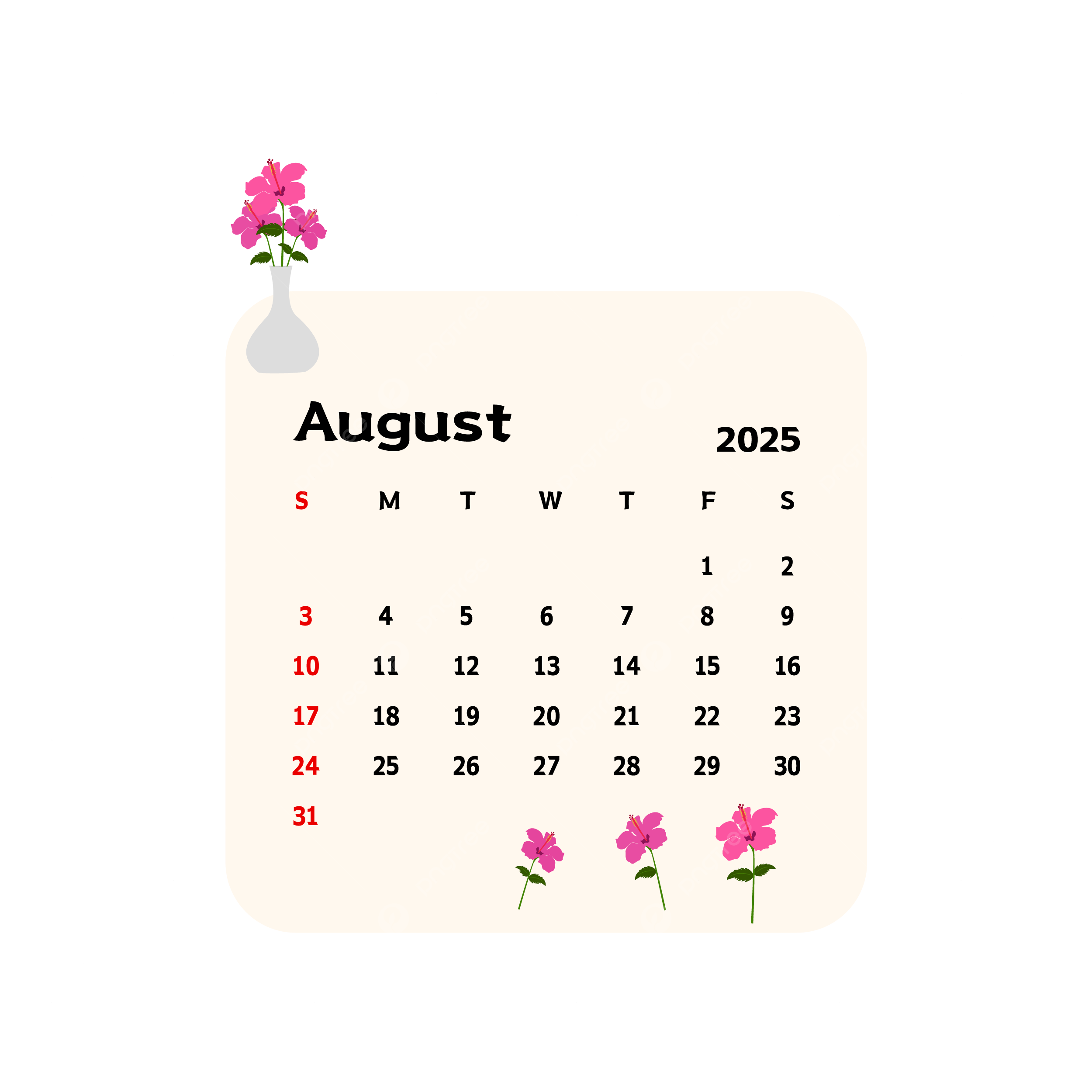 August 2025 Calendar With Cartoon Pink Flowers Vector Calendar Clipart Cartoon Clipart August Clipart PNG And Vector With Transparent Background For Free Download