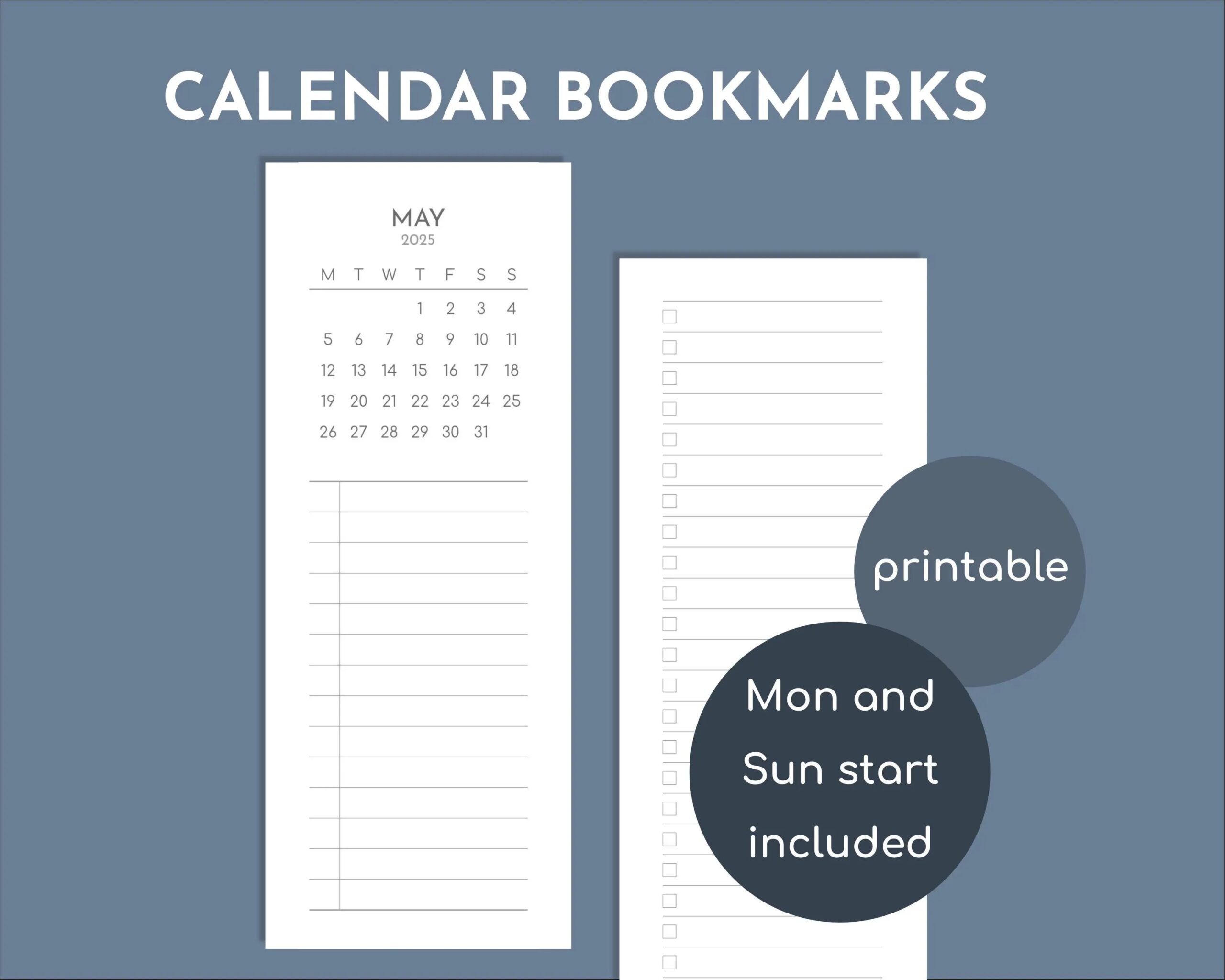 2025 Monthly Calendar Bookmark Printable With Task List Monday And Sunday Start Versions Included Etsy