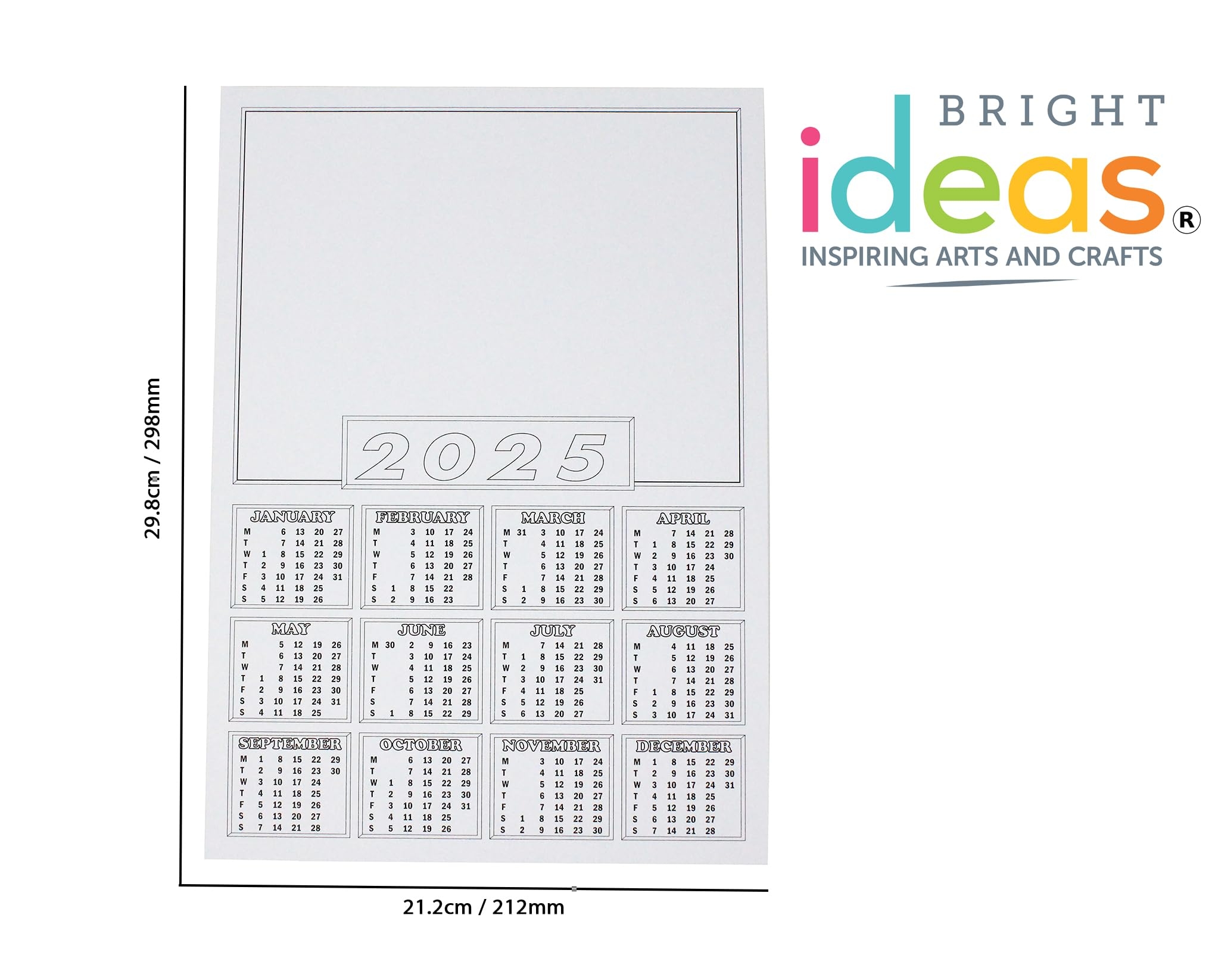 Bright Ideas 2025 Calendar A4 Blanks For Kids To Colour And Decorate For School Crafts Ideal For The Classroom A4 Calendar Showing 12 Months Pack Of 50 Calendar Blanks 200gsm