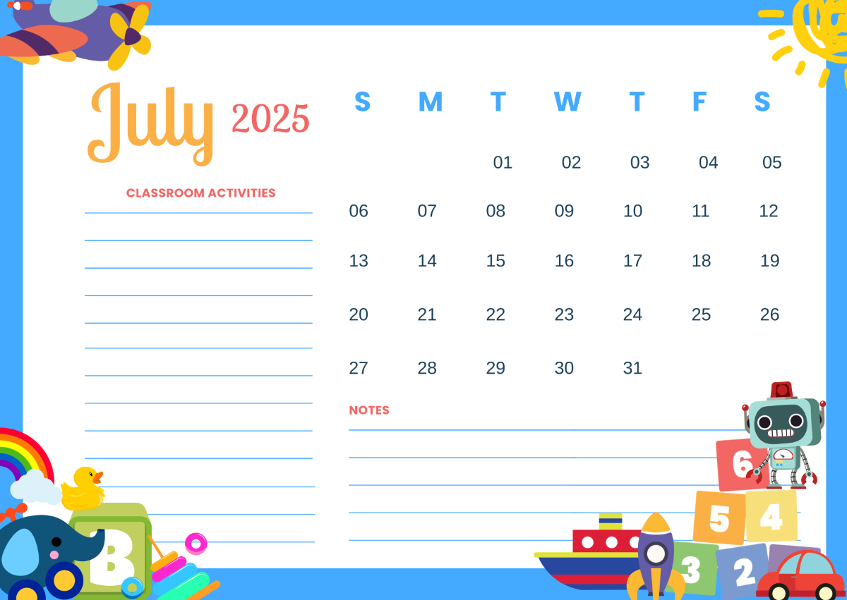 Free July 2025 Classroom Calendar Template To Edit Online