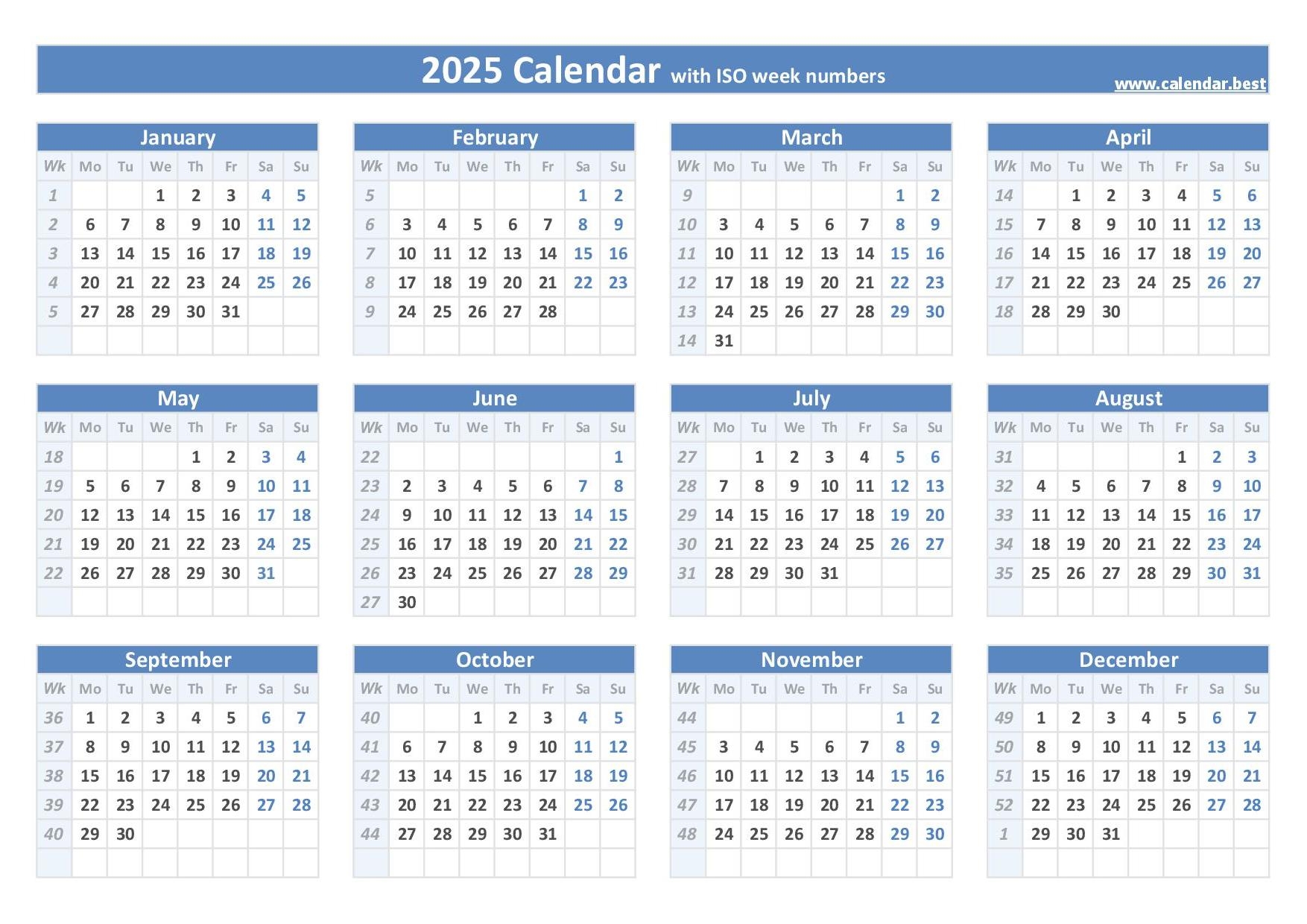 2025 Calendar With Week Numbers US And ISO Week Numbers