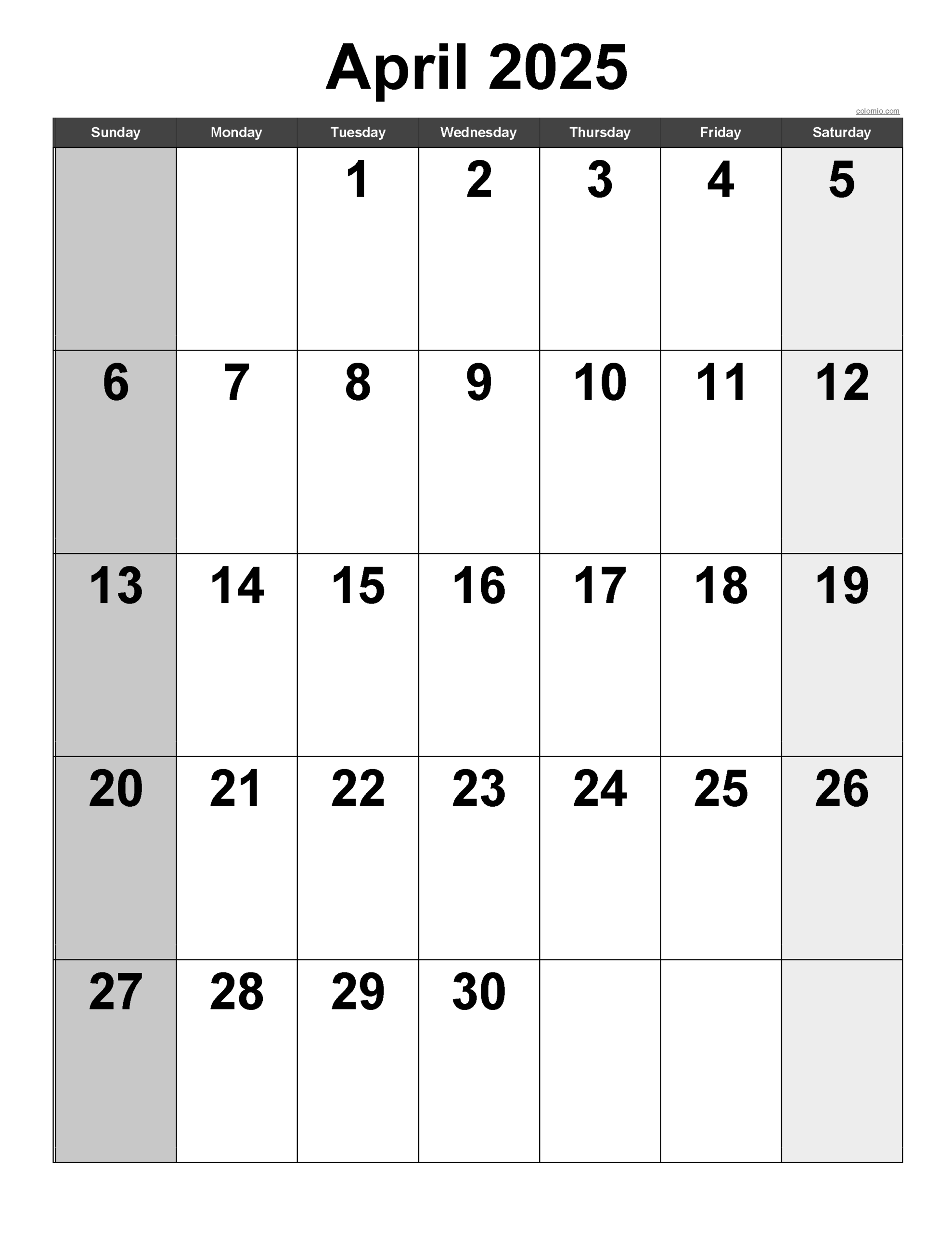 April 2025 Calendar Free Printable PDF XLS And PNG