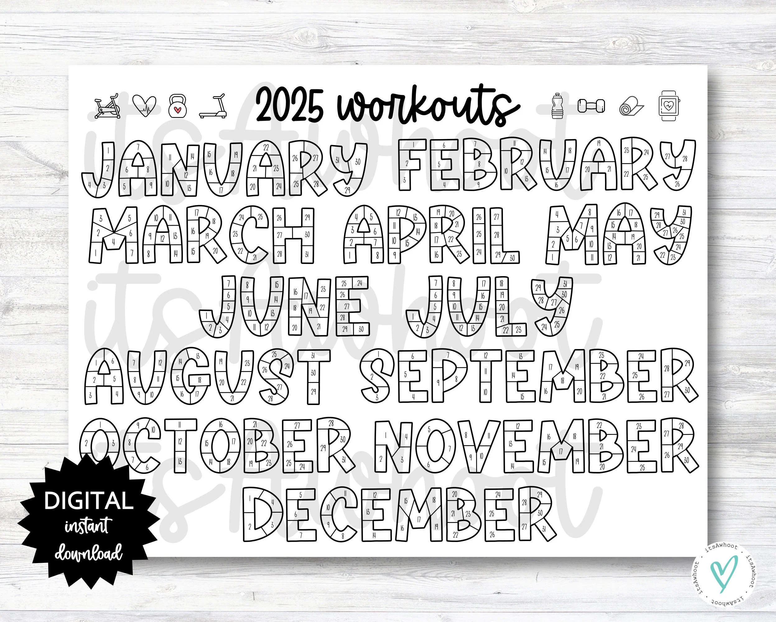 2025 Workouts Tracker Coloring Page Printable Coloring Workout Calendar Year Workout Tracking Coloring Sheet PRINTABLE N001 4 Etsy Canada