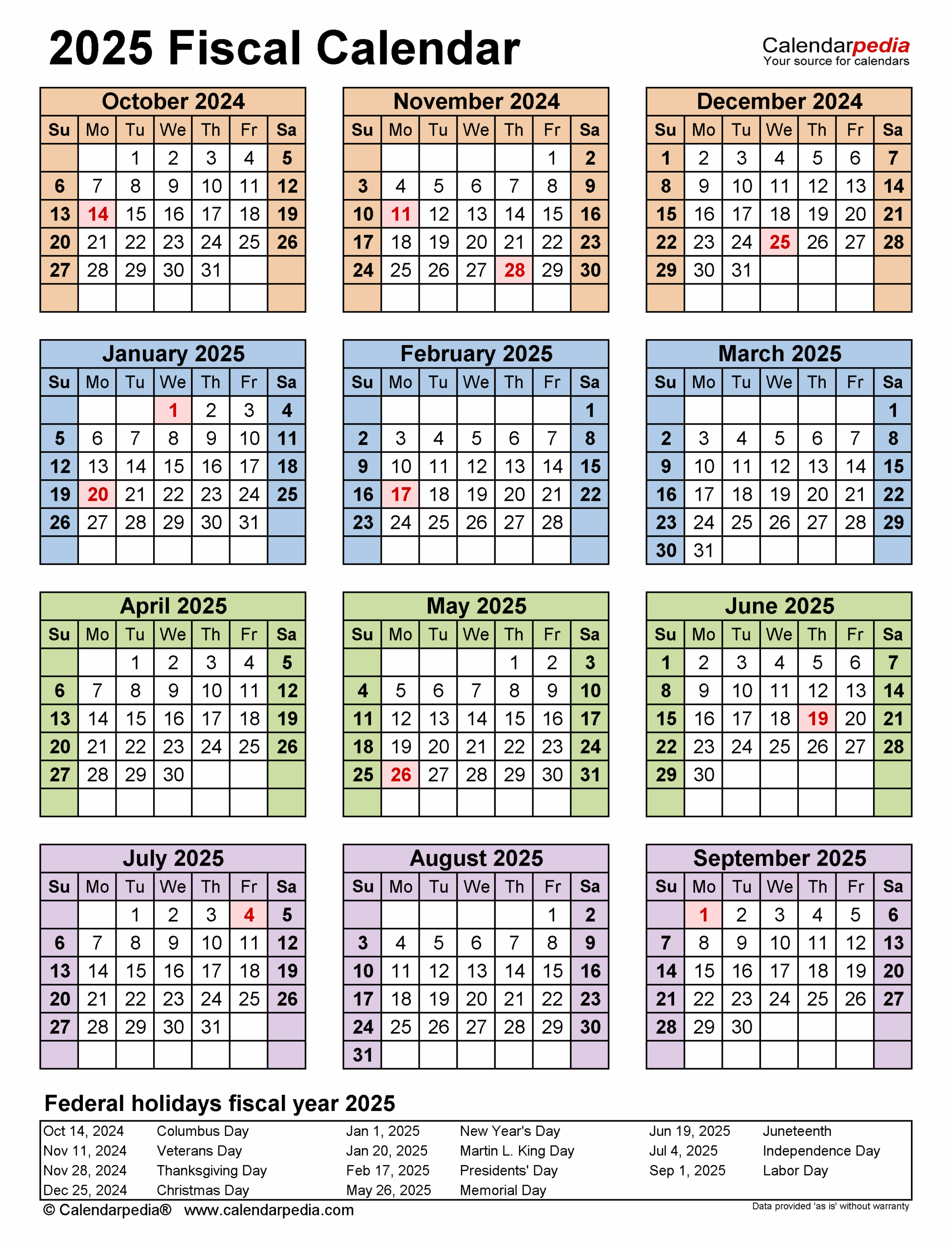 Fiscal Calendar Year 2025 Printable PDF Templates