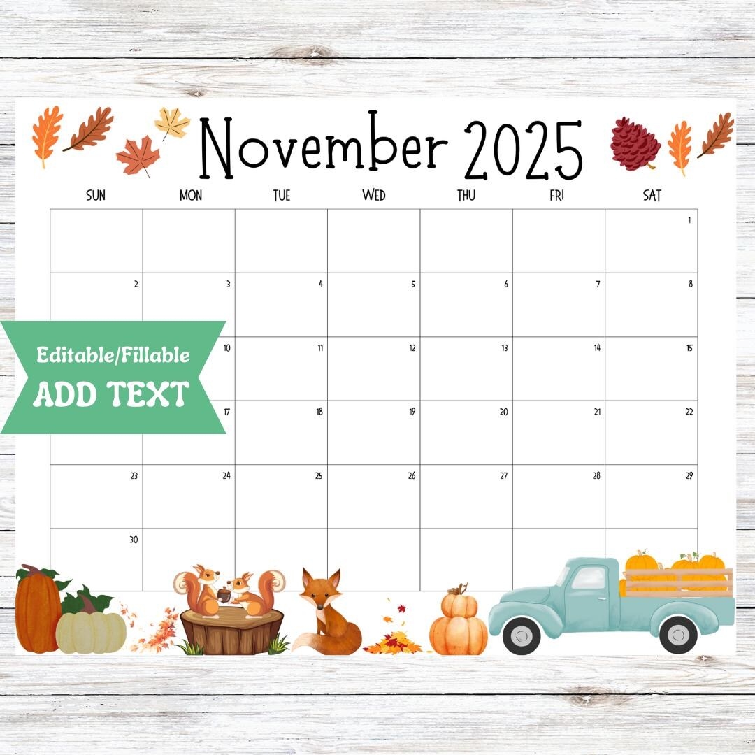 Editable November 2025 Calendar Fillable Printable Digital Download Preschool Daycare Activity Meal Planner Thanksgiving Activity Planner Etsy