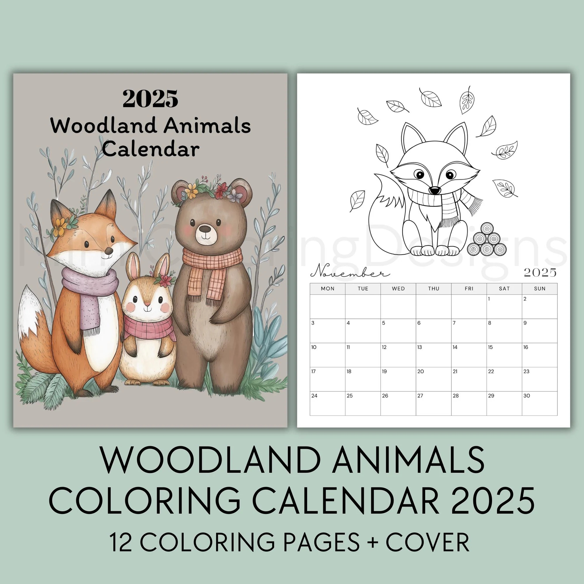 Woodland Animals Coloring Calendar 2025 Printable 2025 Monthly Planner Kids Calendar Woodland Lover Gift Wall Calendar Printable PDF Etsy