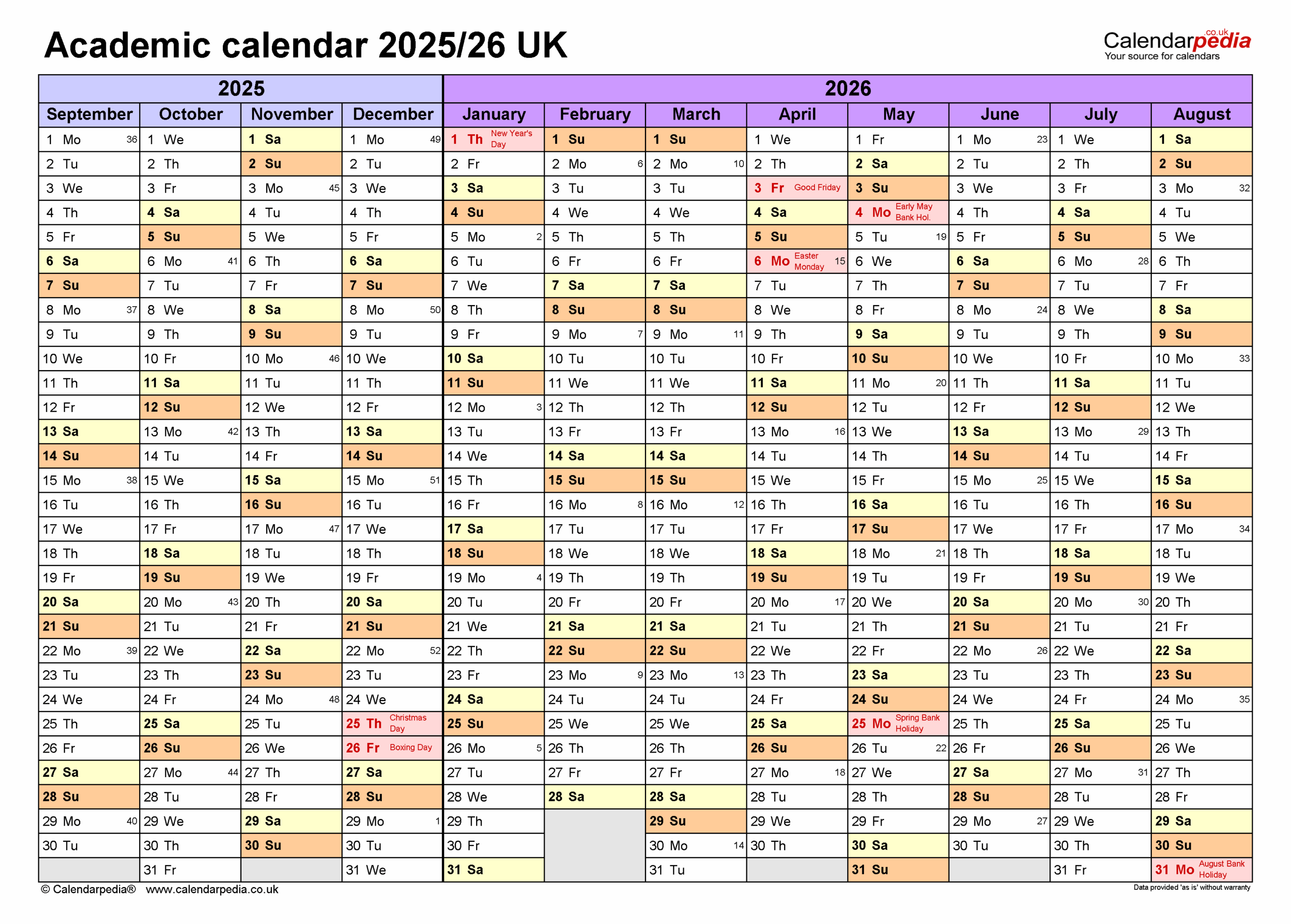 Academic Calendars 2025 26 UK Free Printable PDF Templates