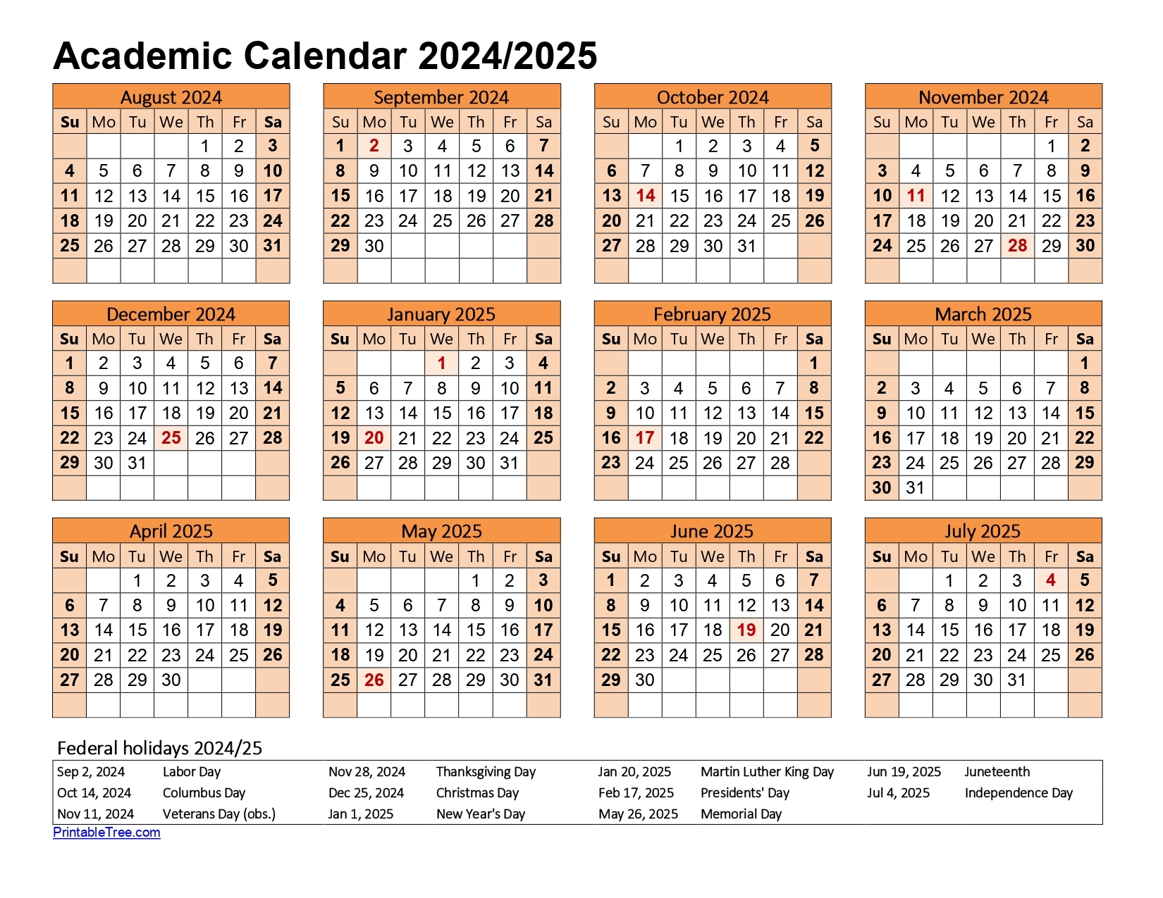 Free Printable Academic Calendar 2024 To 2025 Templates Printable Tree