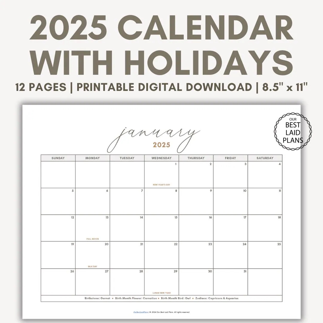 2025 Calendar With Holidays Printable 2025 Calendar With Holidays Printable Year 2025 Calendar With Holidays Printable Landscape PDF Etsy