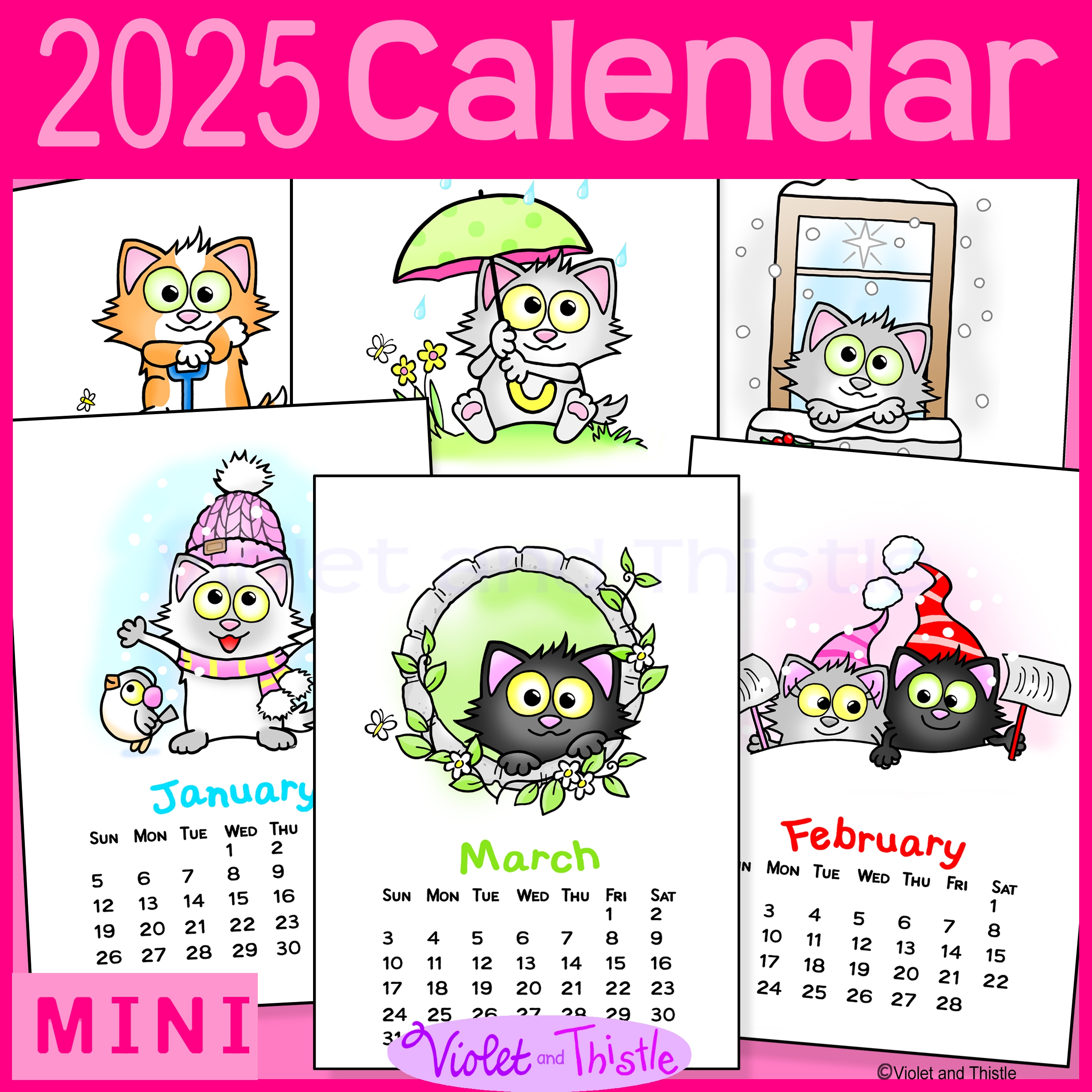 2025 Cat Calendar Monthly Printable Year Long Cute Cats Parent Christmas Gift Teacher Appreciation Made By Teachers