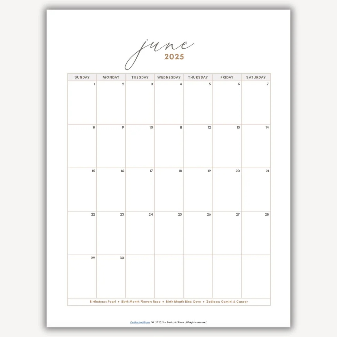 June 2025 Calendar Printable Download June 2025 Printable PDF June Calendar 2025 Portrait Blank Minimalist Wall Calendar June Month 2025 Etsy