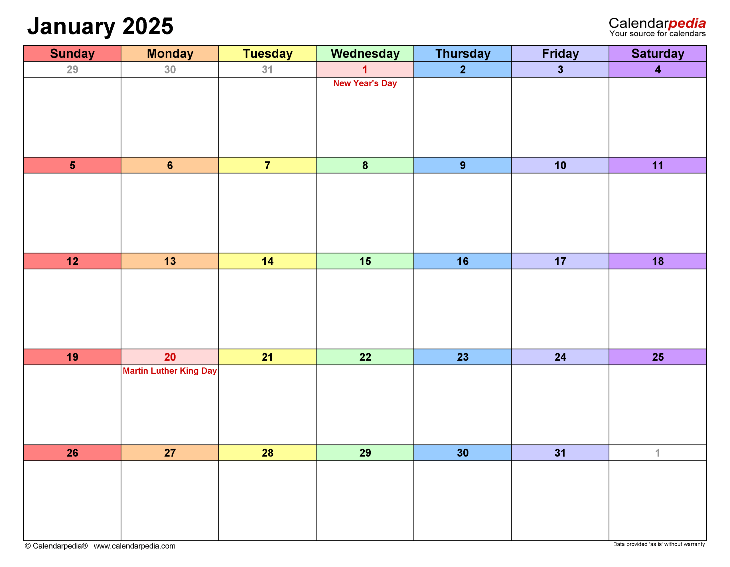 2025 Blank One Page Calendar Calendarpedia