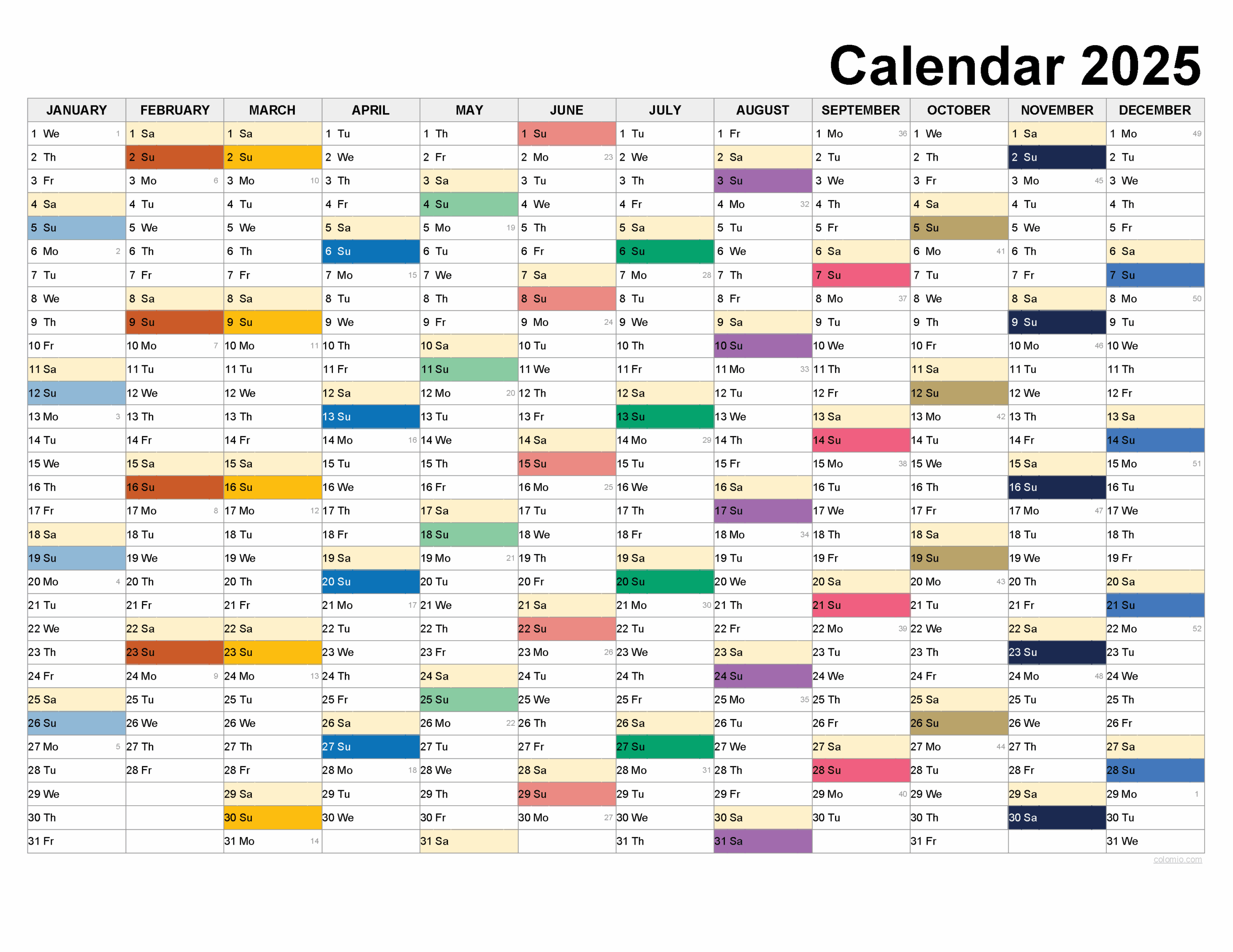 2025 Calendar Printable PDF Excel And Image File Free Download Easy To Print Annual Calendars