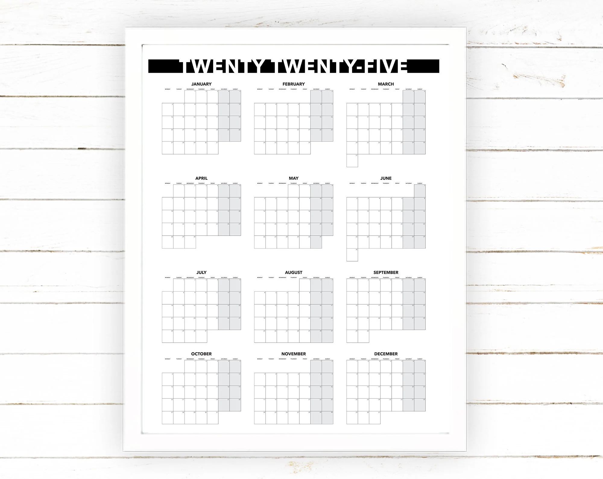 2025 Yearly Calendar Monthly View Printable Blank Dated Month By Month Year View Extra Large Wall Calendar Digital Printable Etsy