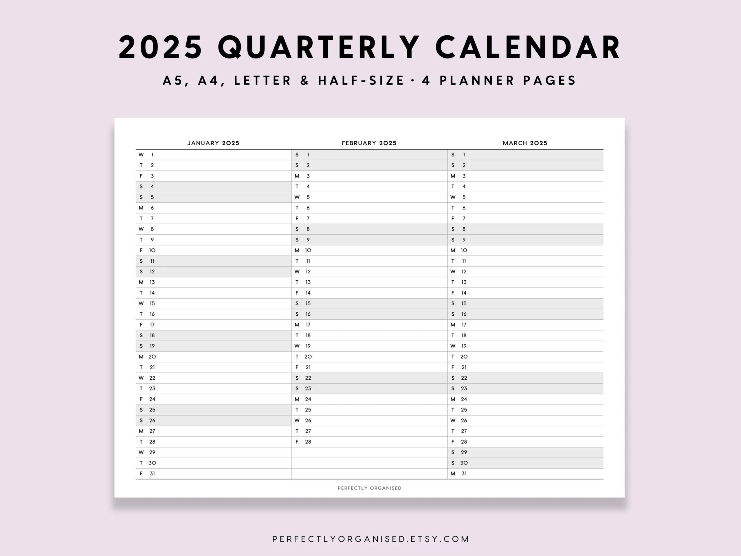2025 Quarterly Calendar 2025 Foldout Calendar 2025 Folding Calendar 2025 3 Month Calendar Classic A5 Half size A4 Letter PRINTABLE Etsy