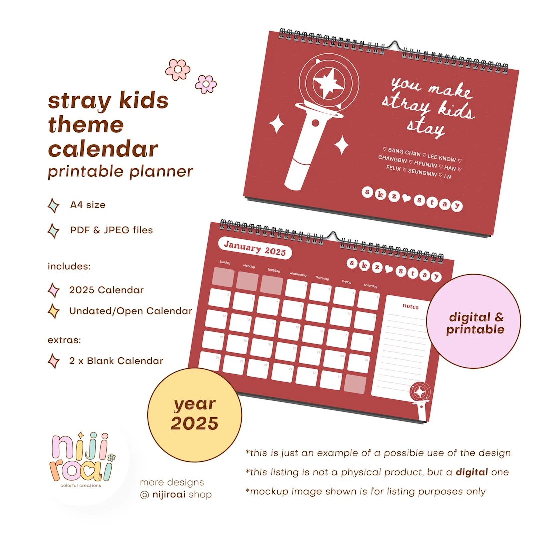 Stray Kids Calendar 2025 Digital Kpop Journal Printable Planner Weekly Daily Monthly Undated Goodnotes A4 Productivity Planner Kpop Gifts Etsy