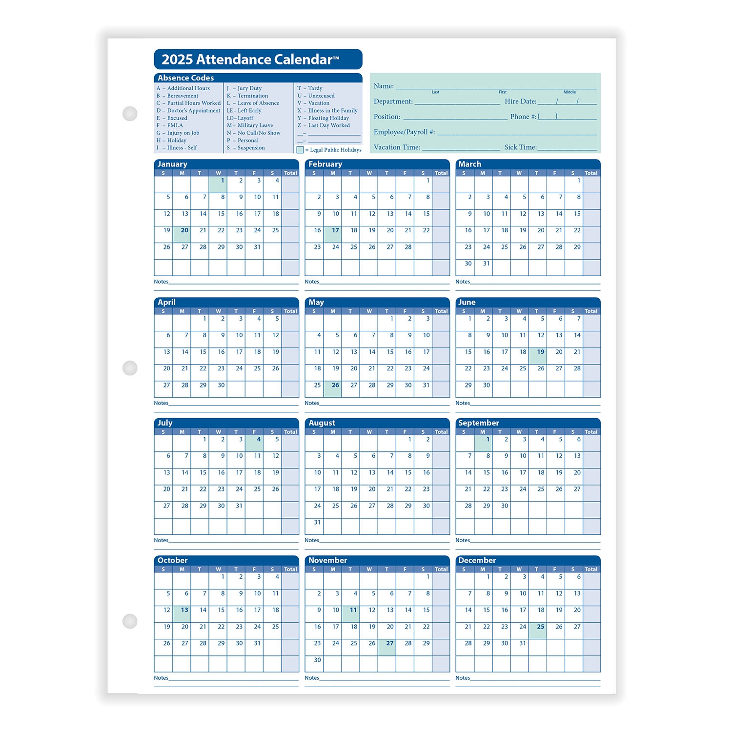 Annual Calendar Blank 2025