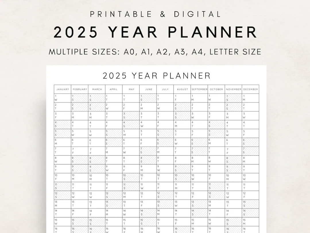 2025 Yearly Planner Printable Yearly Planning Calendar Calendar Poster Digital Calendar 2025 Calendar 2025 Planner Yearly Overview Etsy