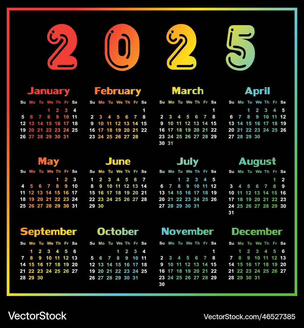 A Calendar Template For Year 2025 Royalty Free Vector Image