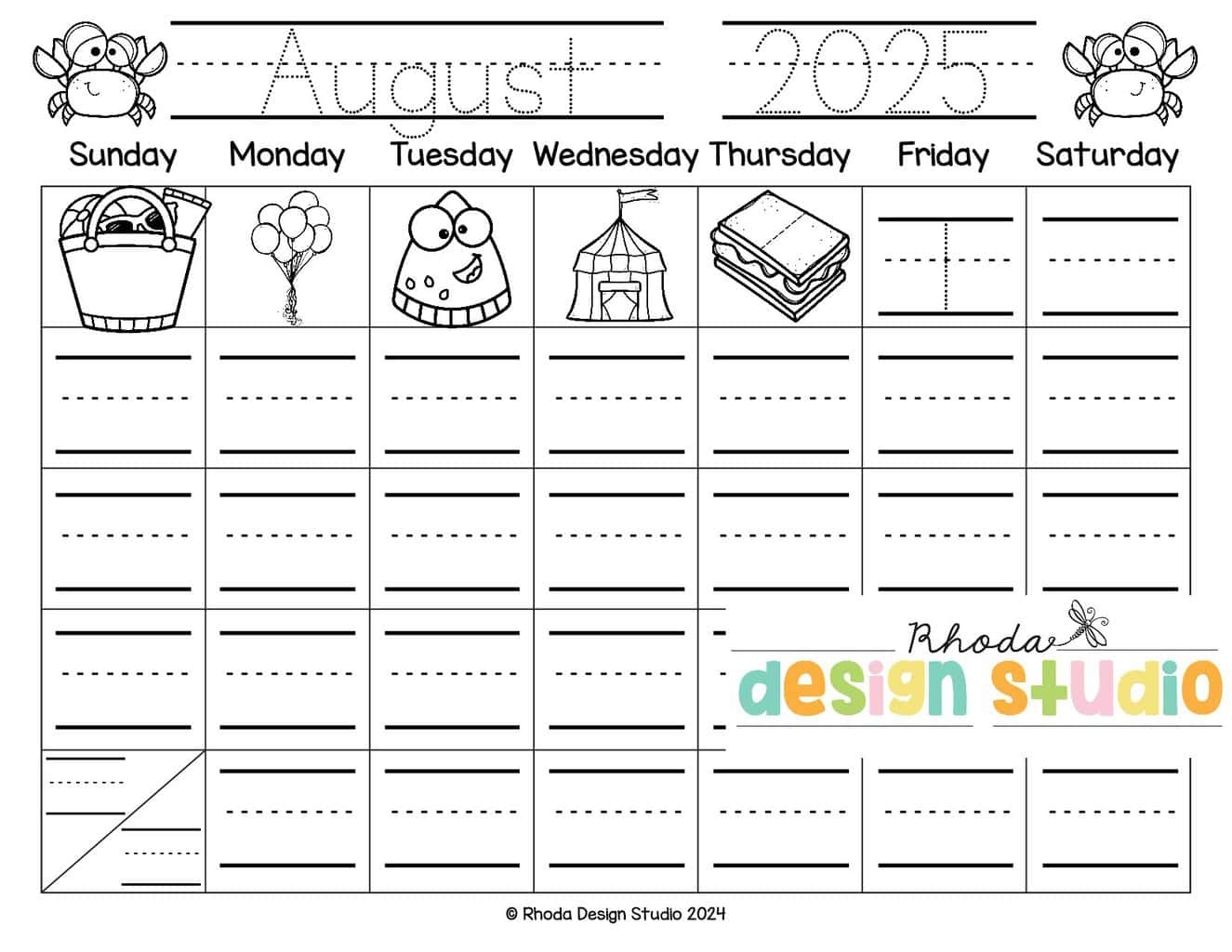 August 2025 Kindergarten Blank Calendar: Stay Organized and Have Fun!