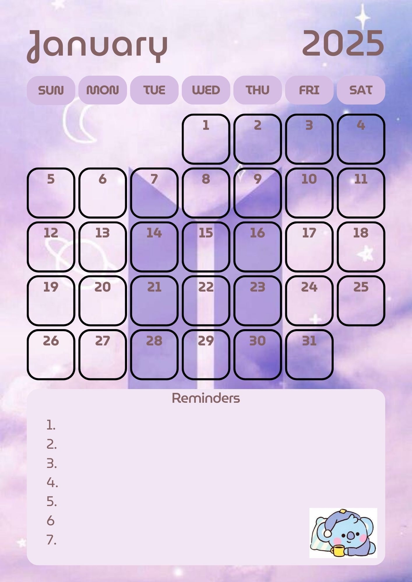 BTS Calendar 2025 By Cherryrose201606 Raket PH