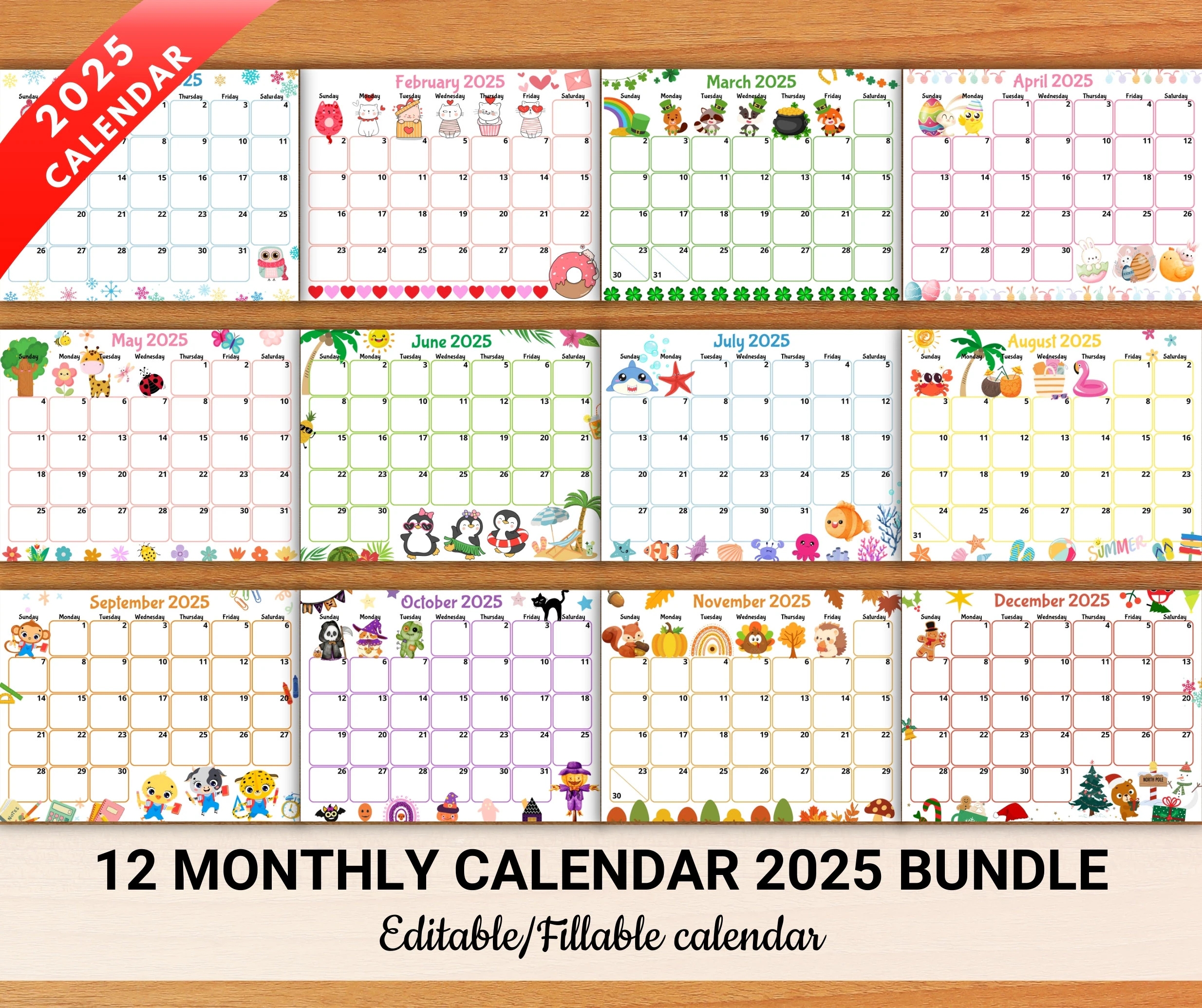 EDITABLE 2025 Calendars Cute Monthly Calendar For Kids Printable Kids Schedule Classroom Calendar Homeschool Calendar Digital Download Etsy