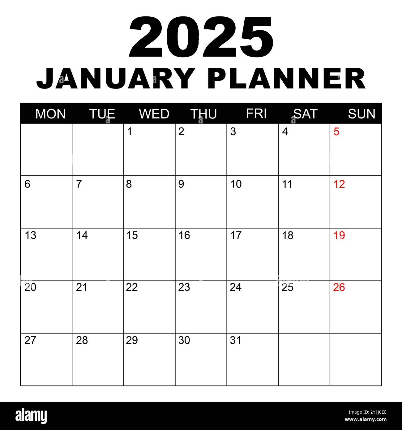 January 2025 Calendar Week Starts On Monday Blank Calendar Template Fits Letter Size Page Stationery Design Simple Set Calendar 2025 Monthly Stock Vector Image Art Alamy