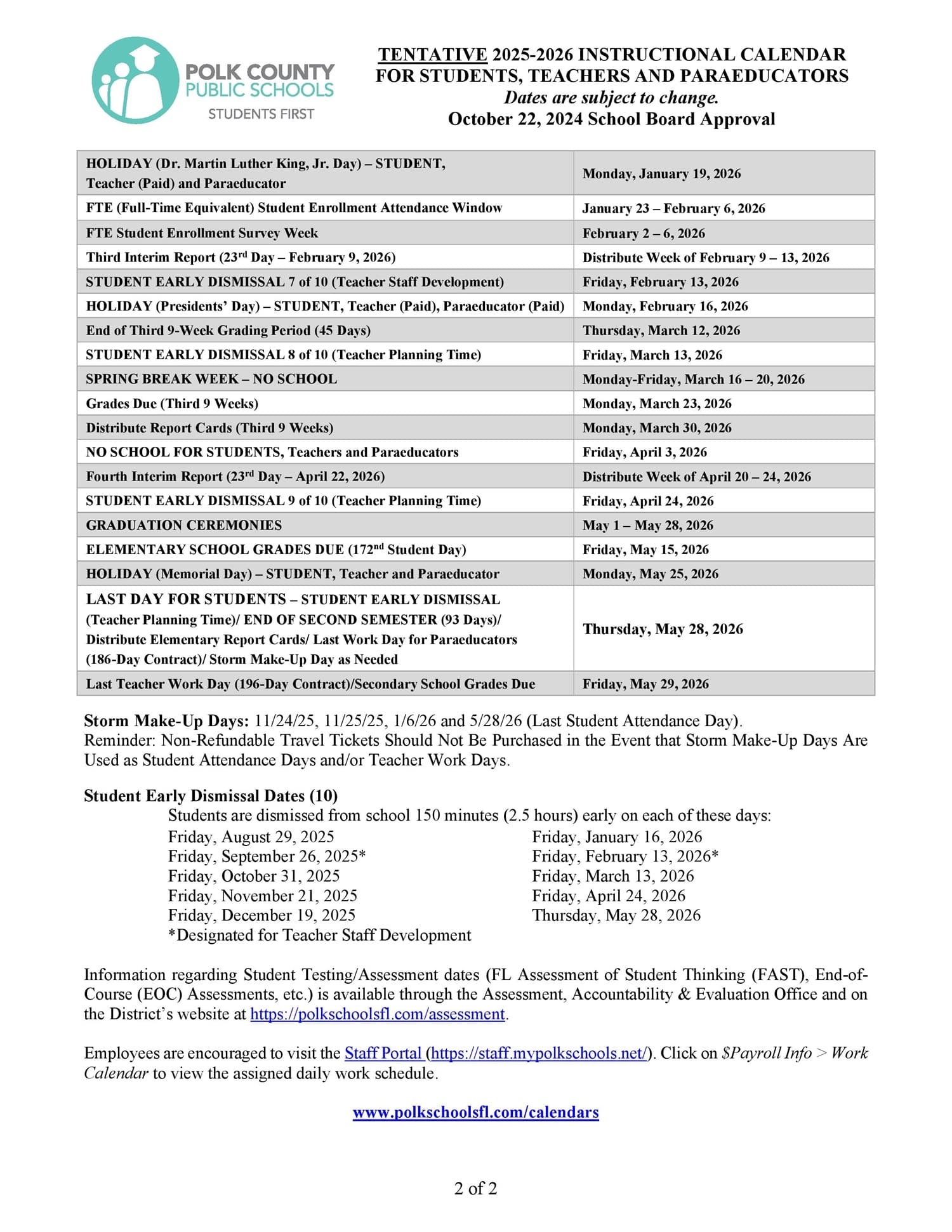 2025 2026 Polk County School Calendar Public Charter Private