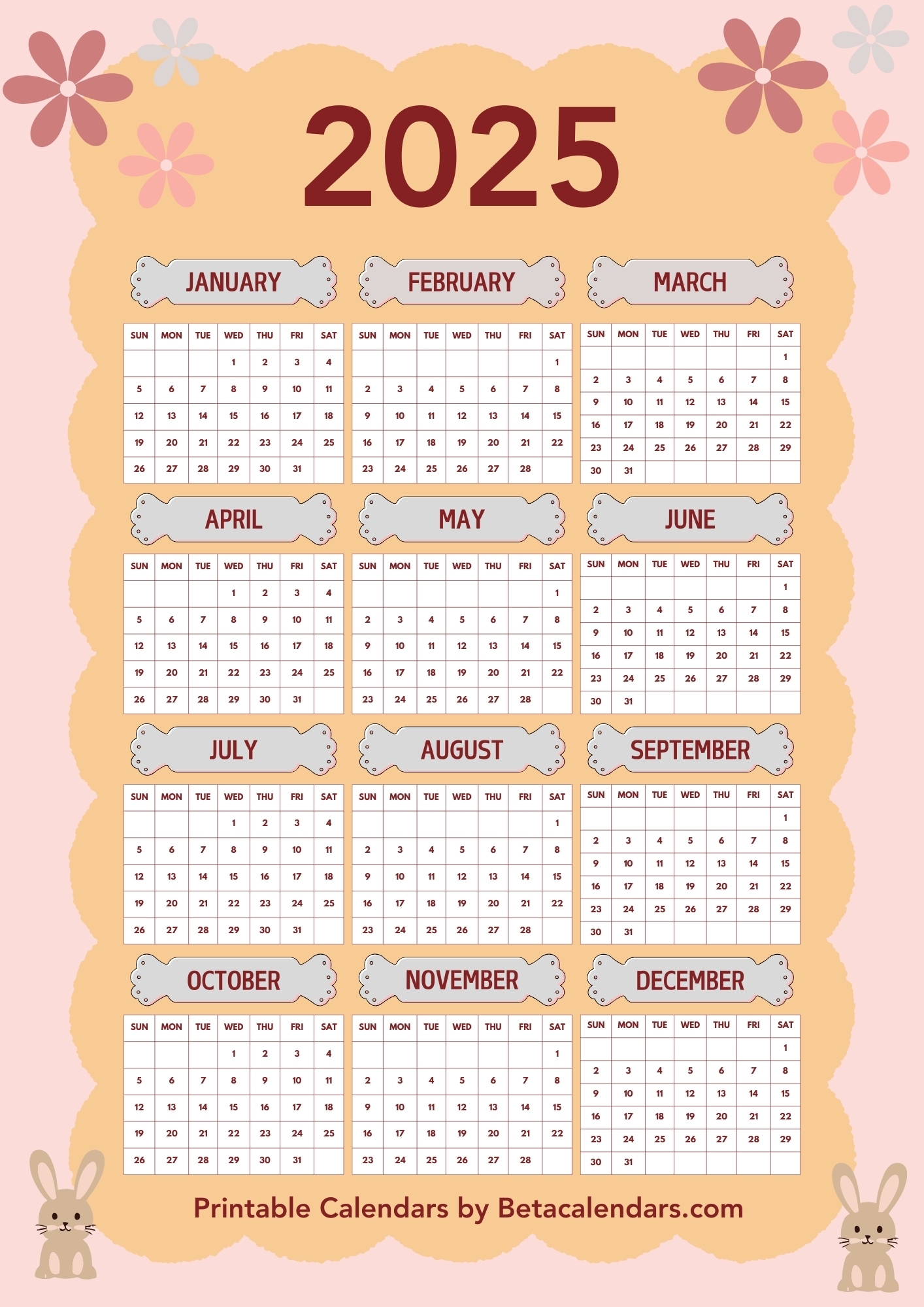 2025 Yearly Calendar Printable Calendar 2025 Calendar 2025 Digital Calendar Year At A Glance 2025 Annual Calendar Yearly Wall Calendar Etsy
