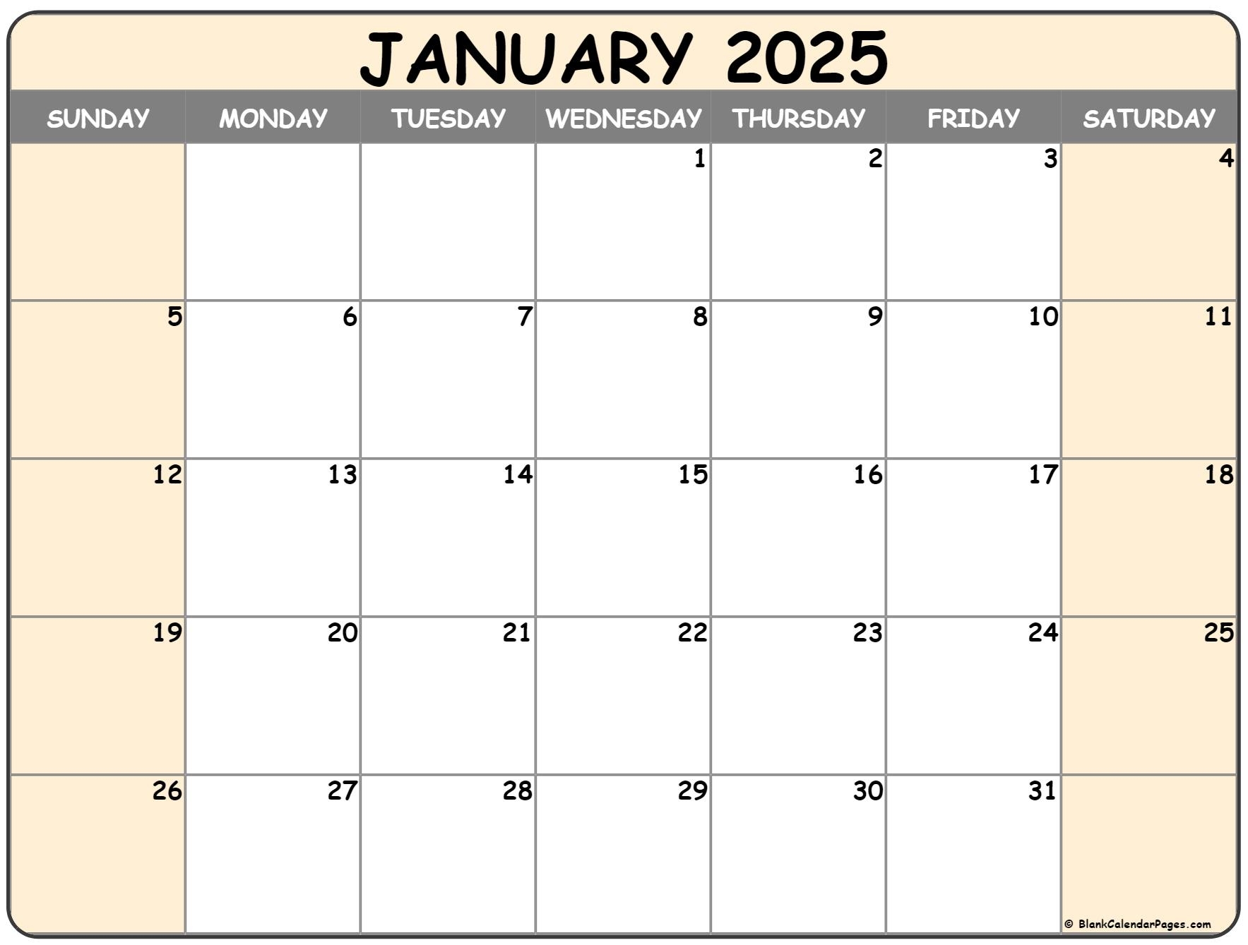 Blank Calendar 2025 Landscape