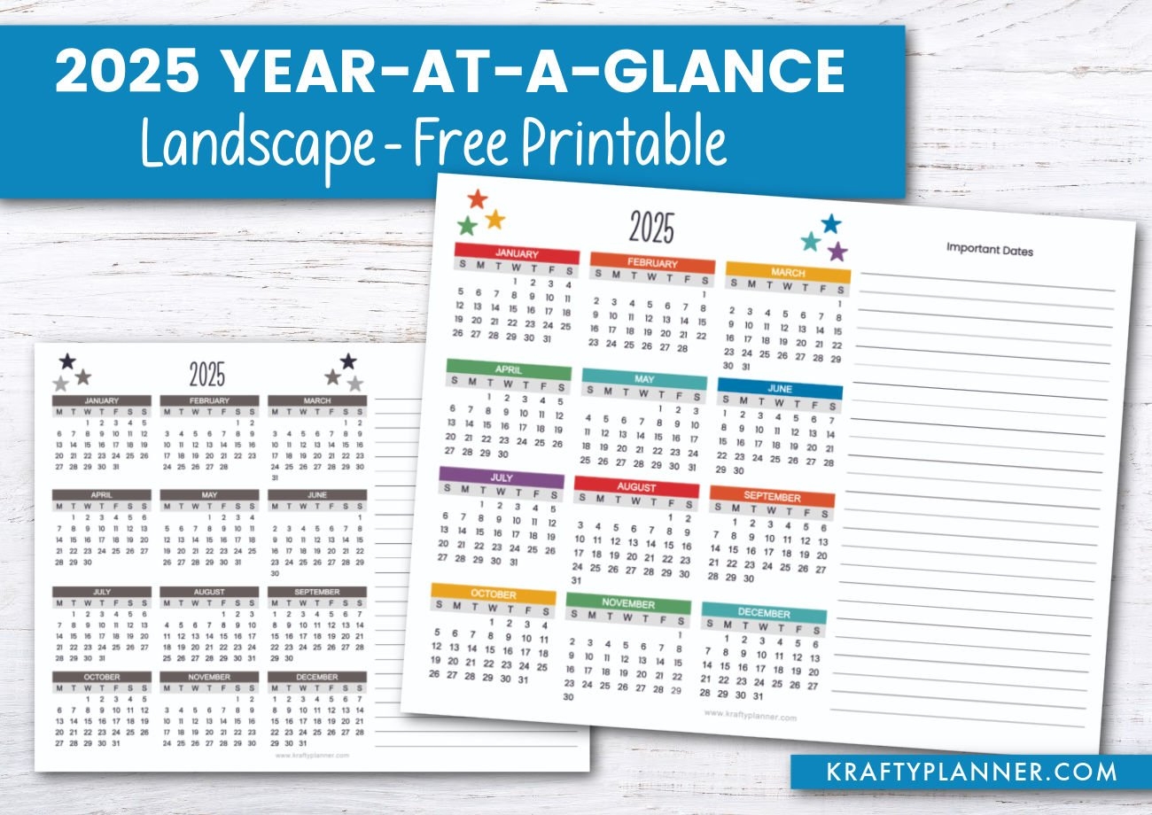 Landscape 2025 Year at a Glance Calendar Krafty Planner