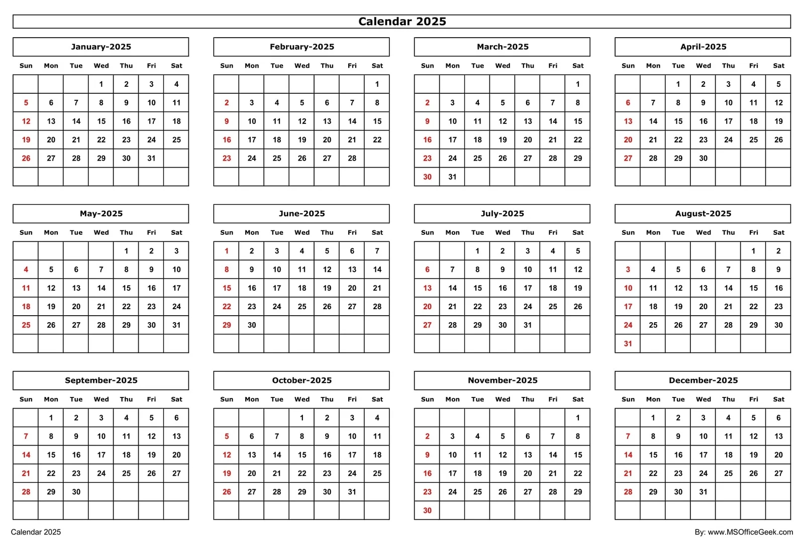 Ready To Use Printable Calendar 2025 MSOfficeGeek