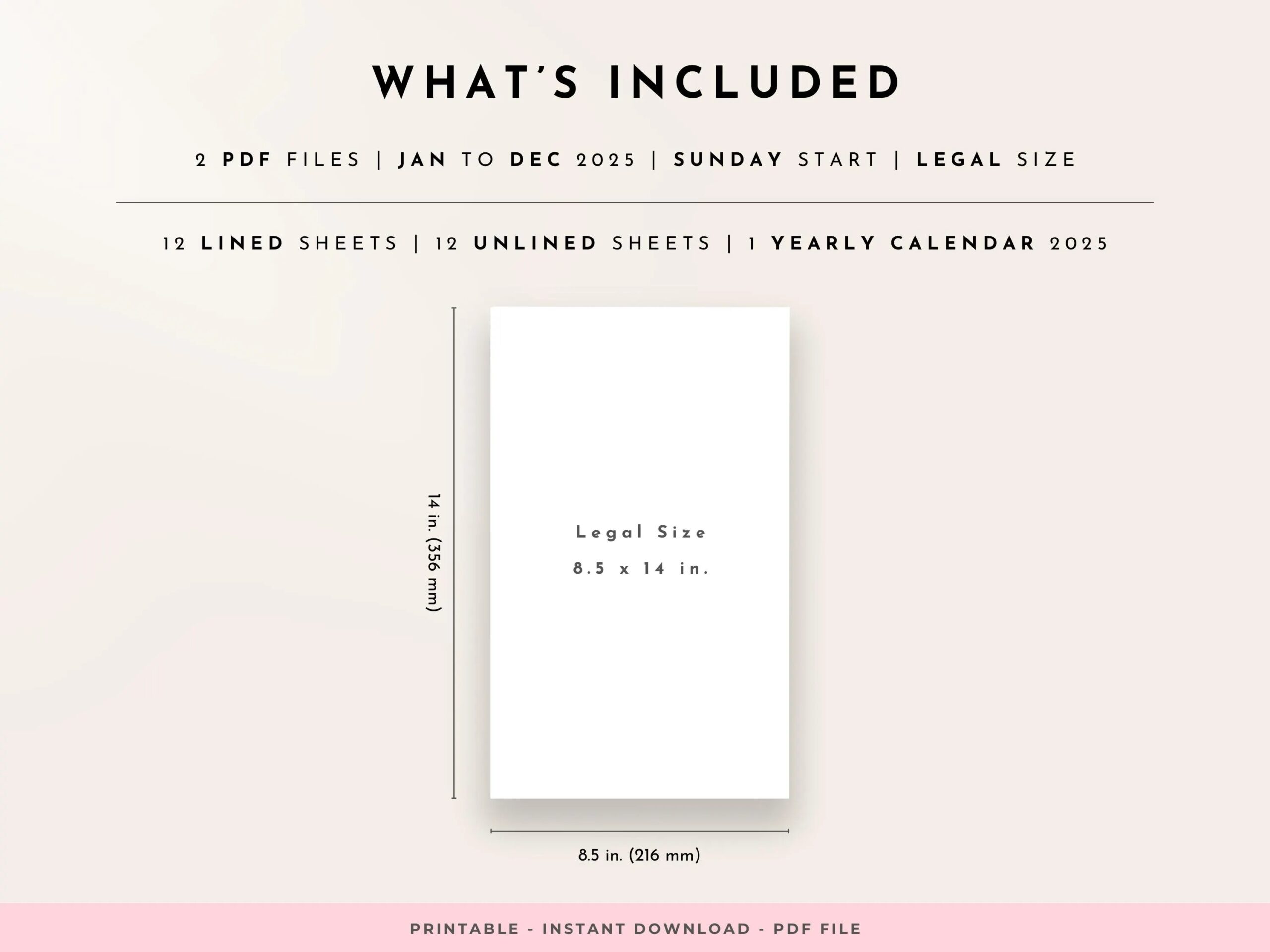 2025 Monthly Yearly Printable Wall Calendar Vertical Legal Size 8 5 X 14 Sunday Start Lined And Unlined Simple Minimalist Design Etsy