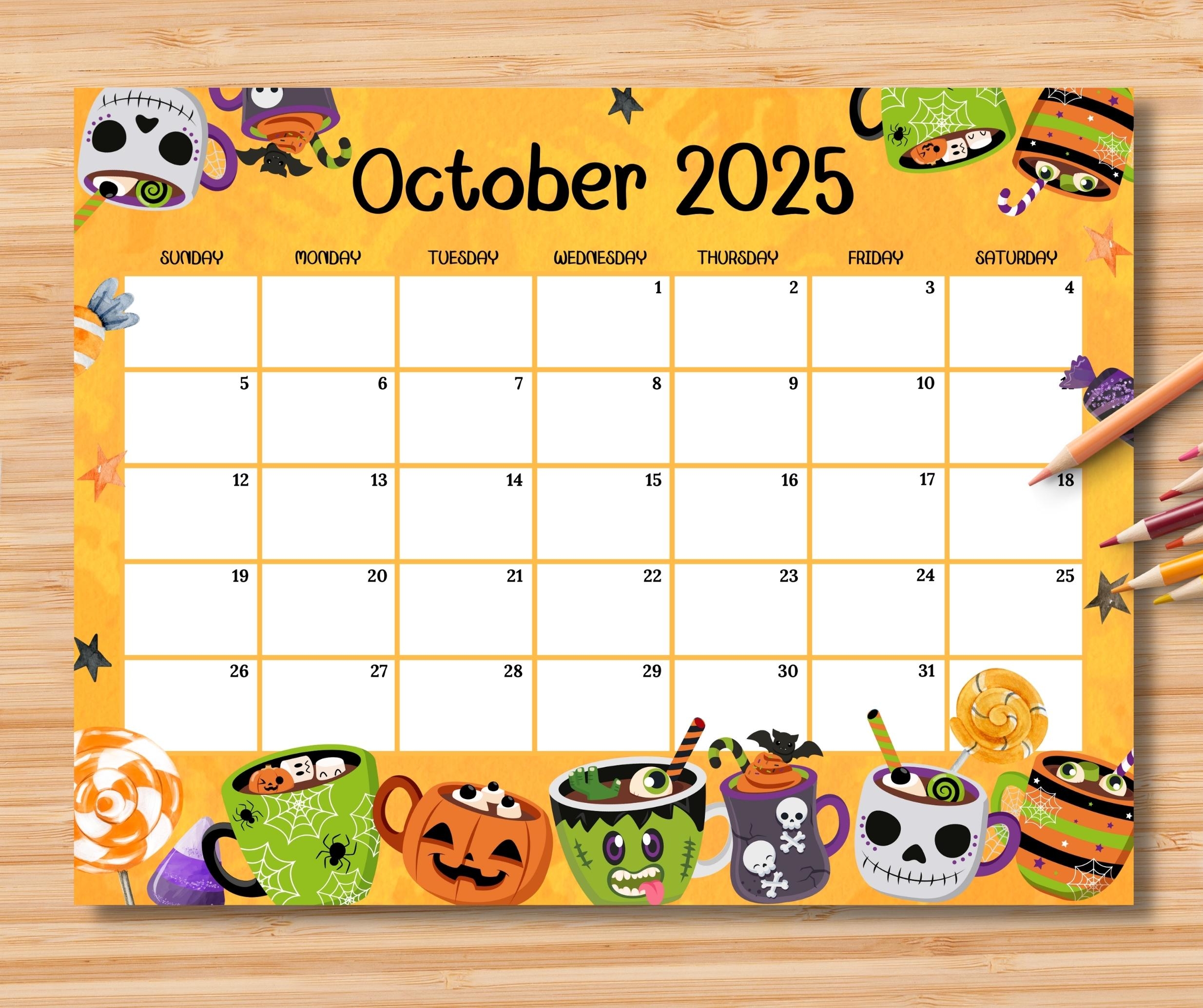EDITABLE October 2025 Calendar Spooky Halloween Desserts Cute Printable Monthly Schedule Planner For Kids School Home Office Work Digital Etsy