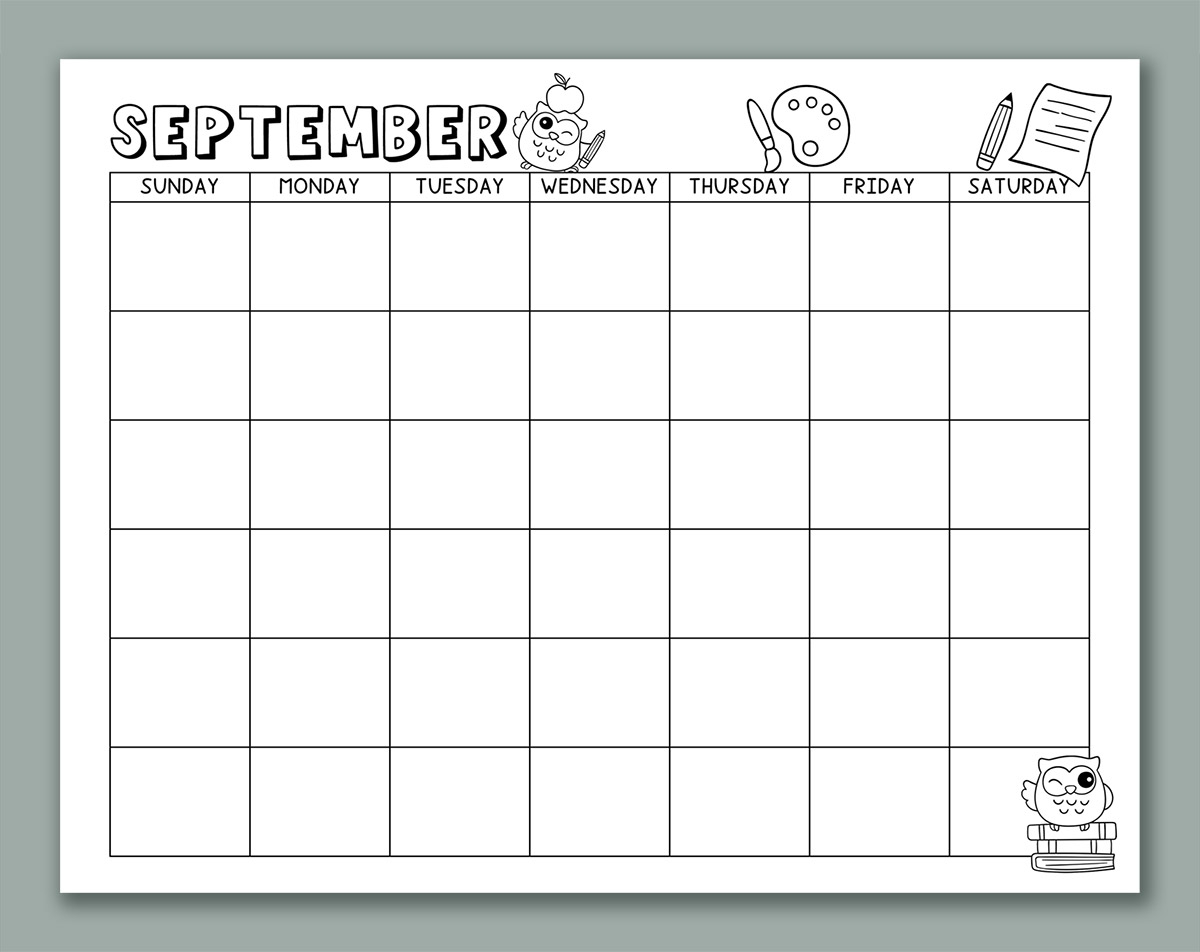 Blank Calendar 2025 September Printable Cute