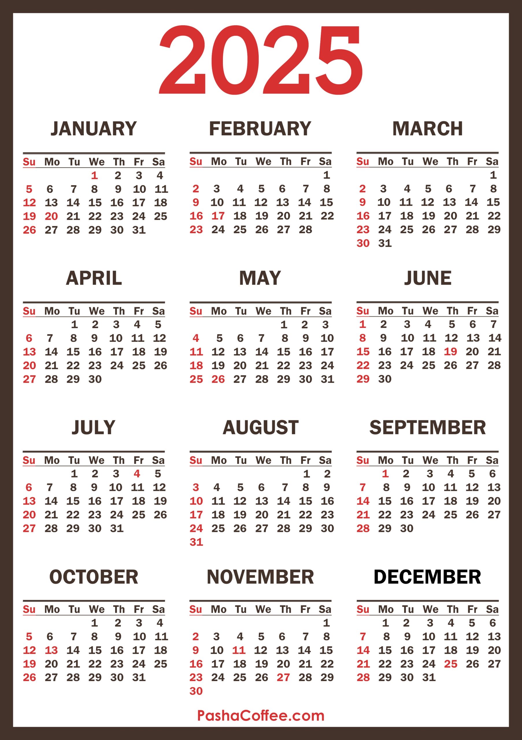 2025 Calendar With Holidays Printable Free Vertical PashaCoffee