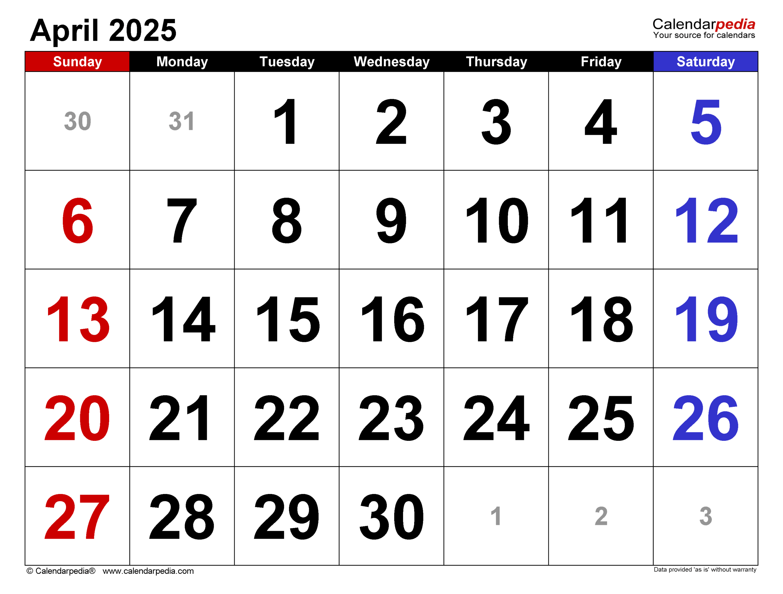 With a blank calendar for April 2025, you can jot down important dates, appointments, and reminders. It’s a great tool for keeping track of your schedule and making sure you don’t miss any important events. Plus, you can customize it to suit your needs and preferences.