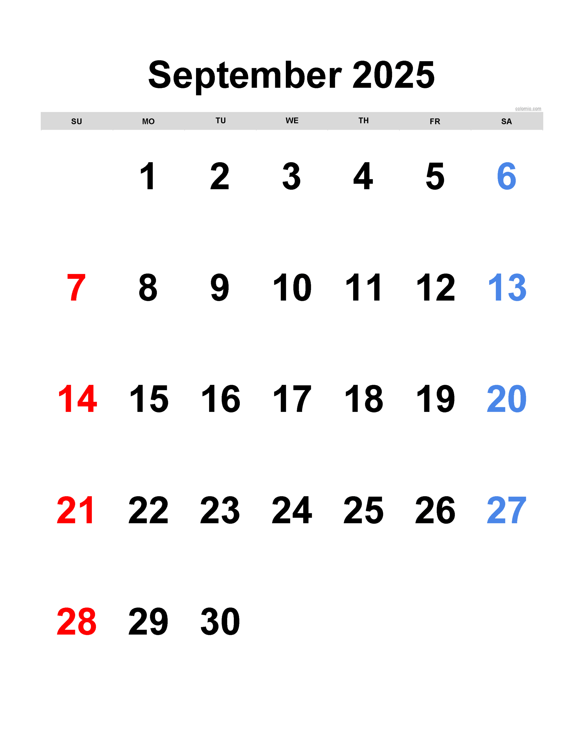 Free September 2025 Calendar Printable PDF XLS PNG Formats