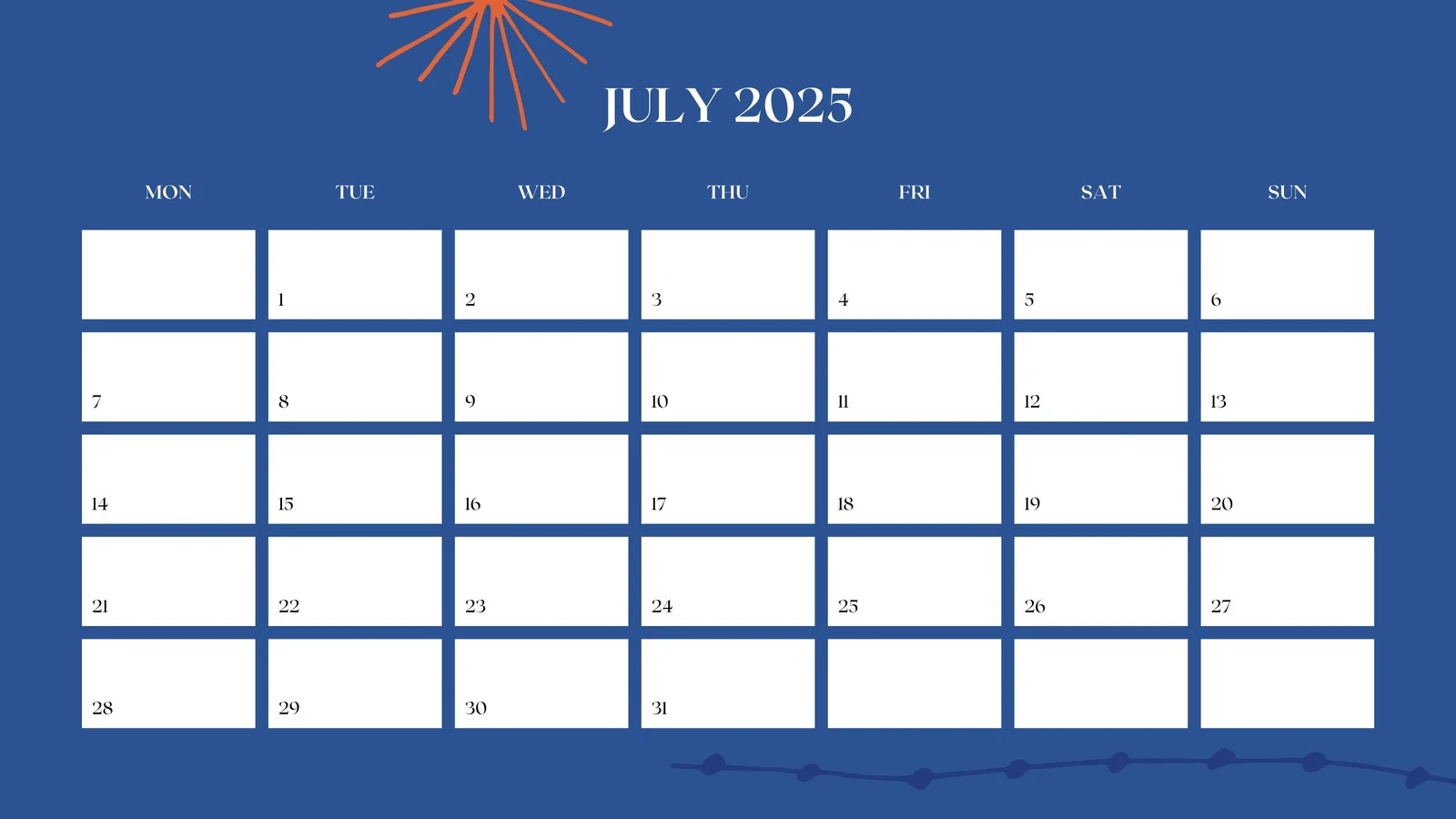 Blank Calendar For Juiy 2025