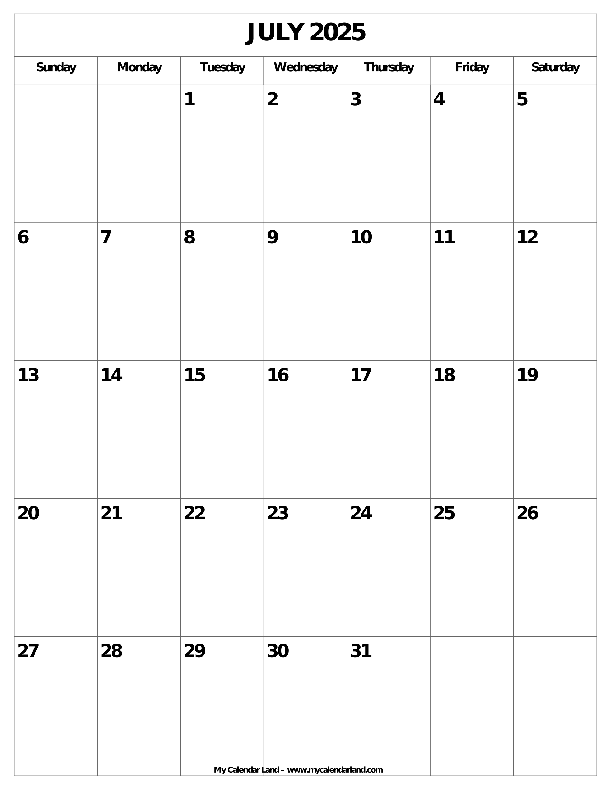 Blank Calendar For July 2025