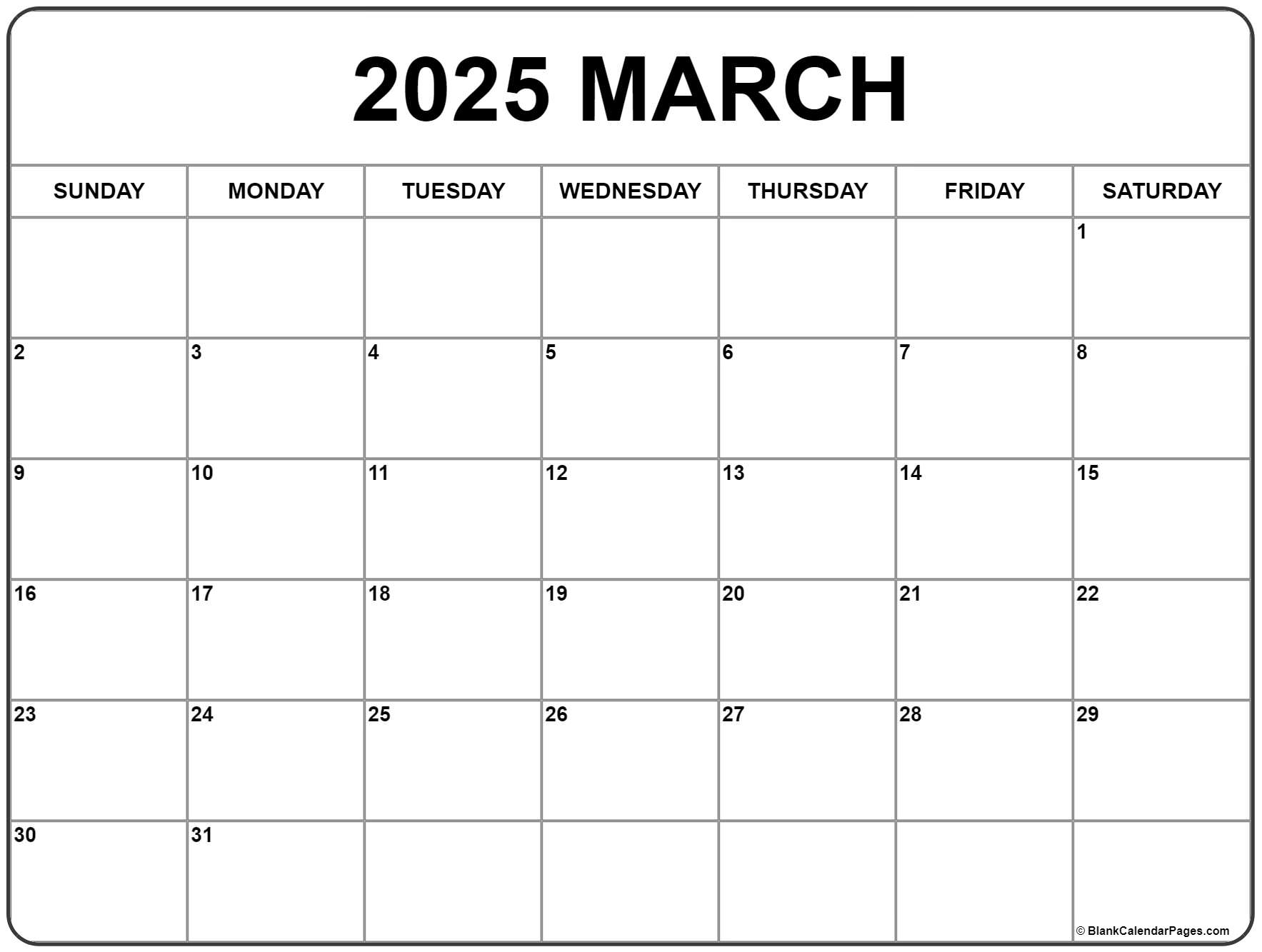 Blank Calendar For Maarch 2025