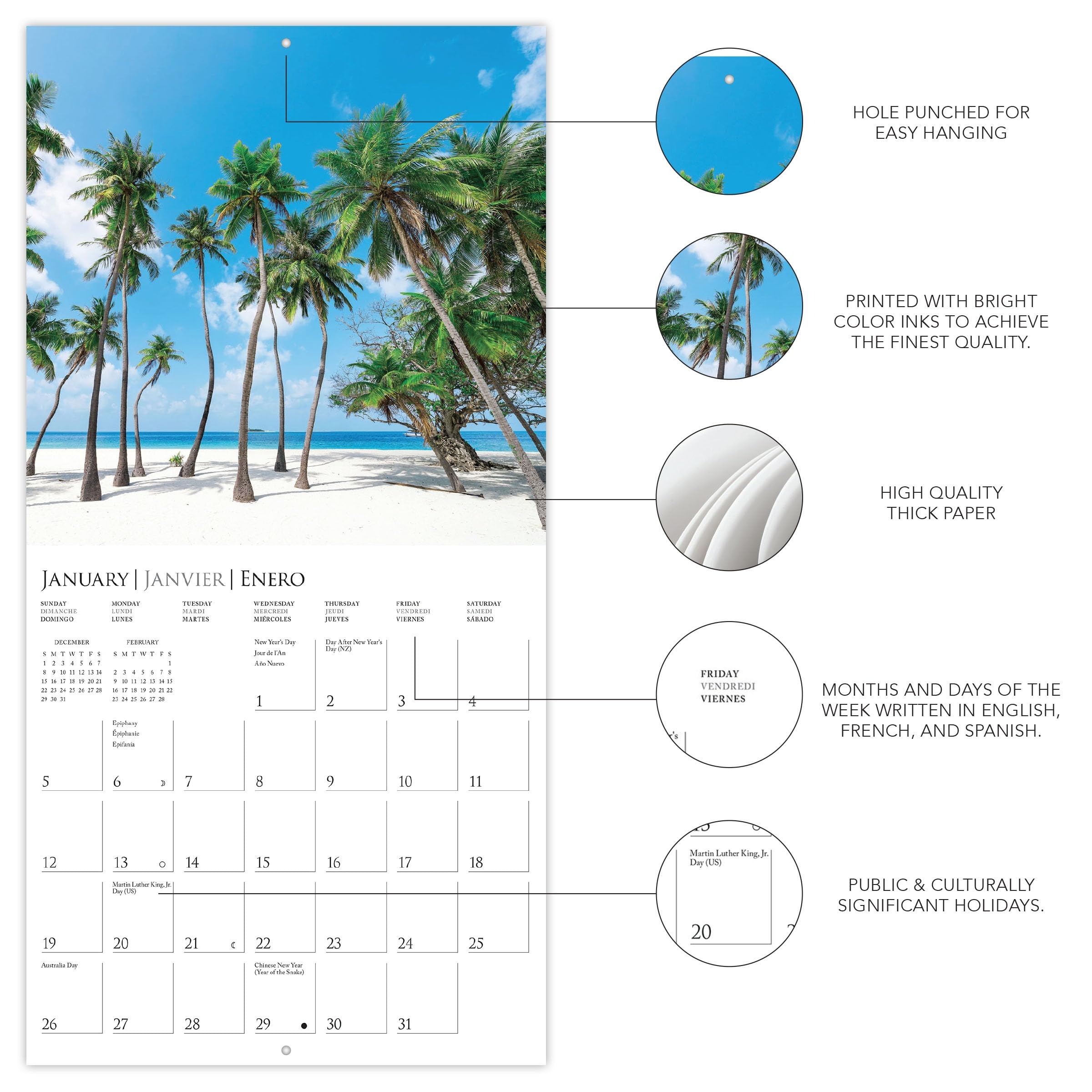 Amazon Graphique 2025 Island Paradise Mini Wall Calendar 7 X 7 Thick Paper Home Office Organizer Large Monthly Grid 3 Languages Marked Holidays 4 Month Preview Page For 2026