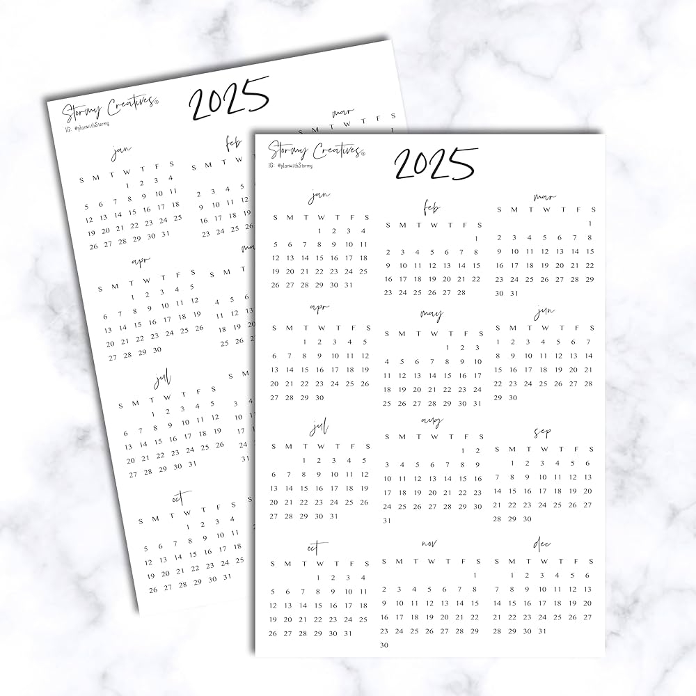 Amazon Mini 2025 Calendar Stickers For Journals Planners Year at a Glance Calendars 2 Sheets Kraft Sunday Start Arts Crafts Sewing